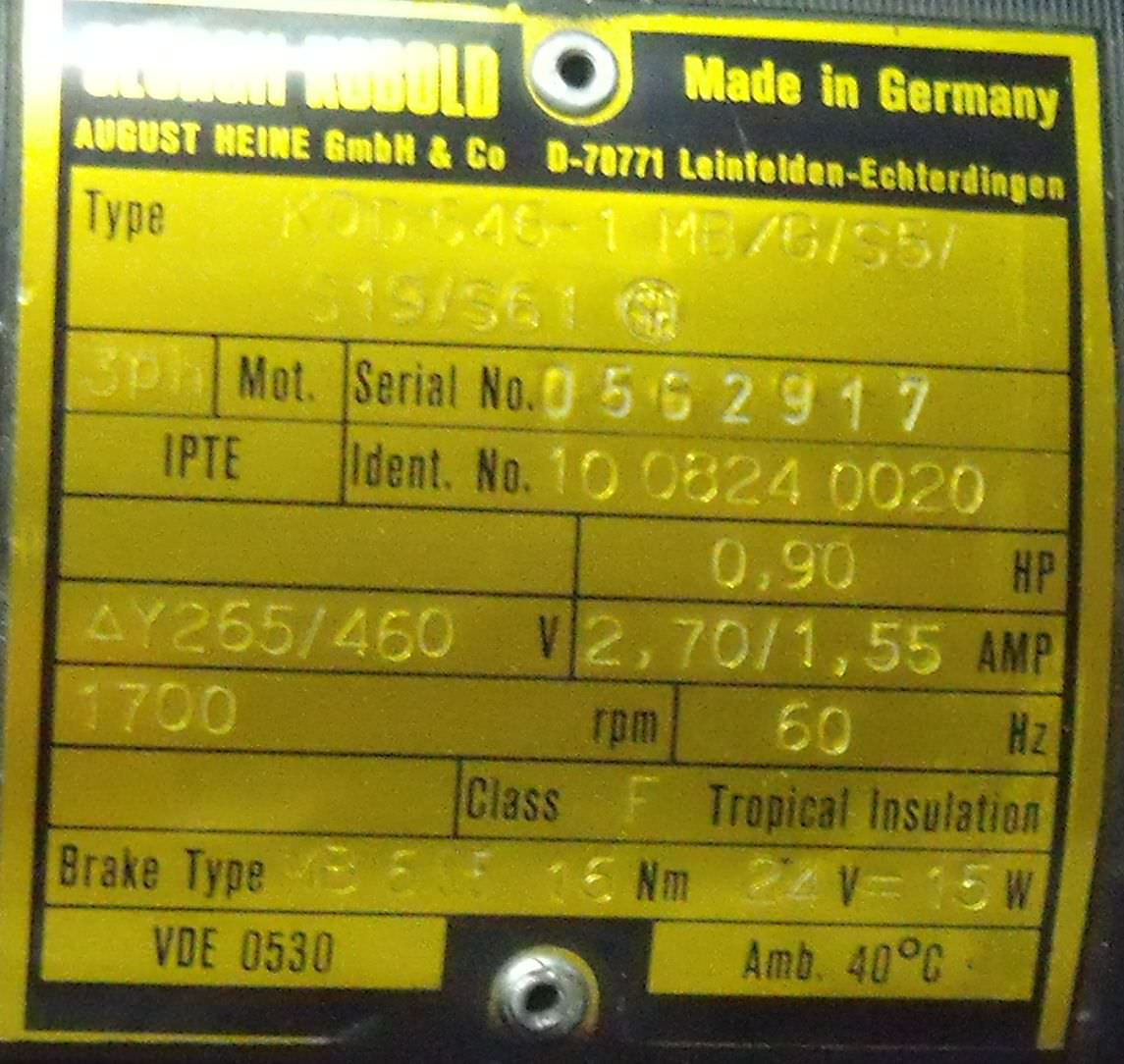 Tipo de máquina: Geared motor 0.6 kW 56.6 rpm