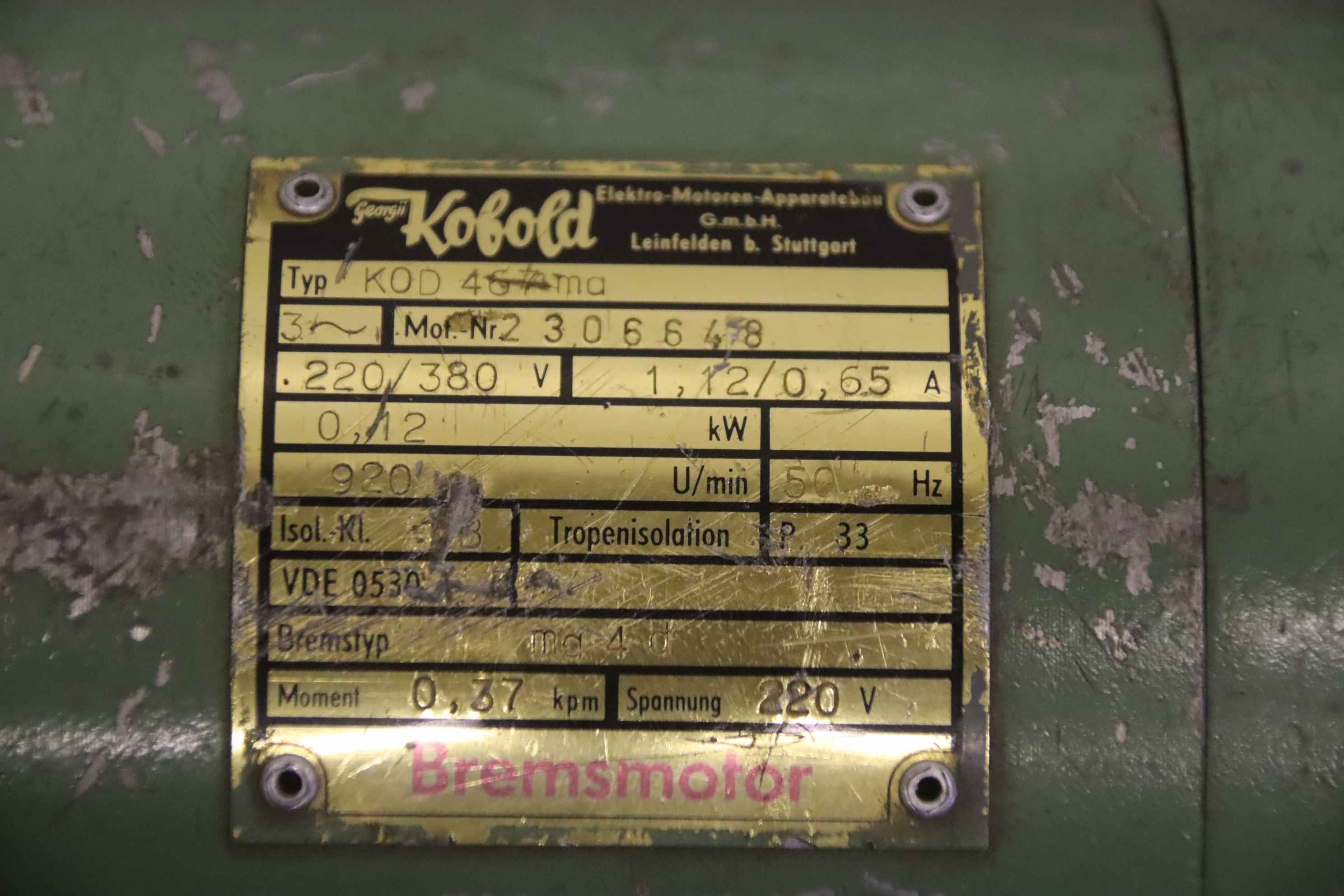 Tipo de máquina: Electric motor 0.12 kW 920 rpm