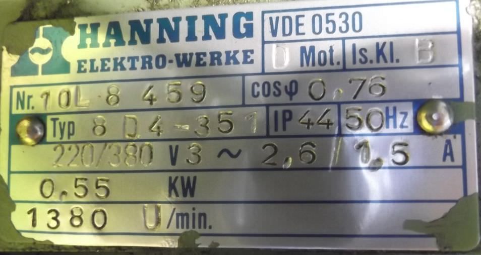 Tipo de máquina: Gear motor 0.55 kW 150 rpm