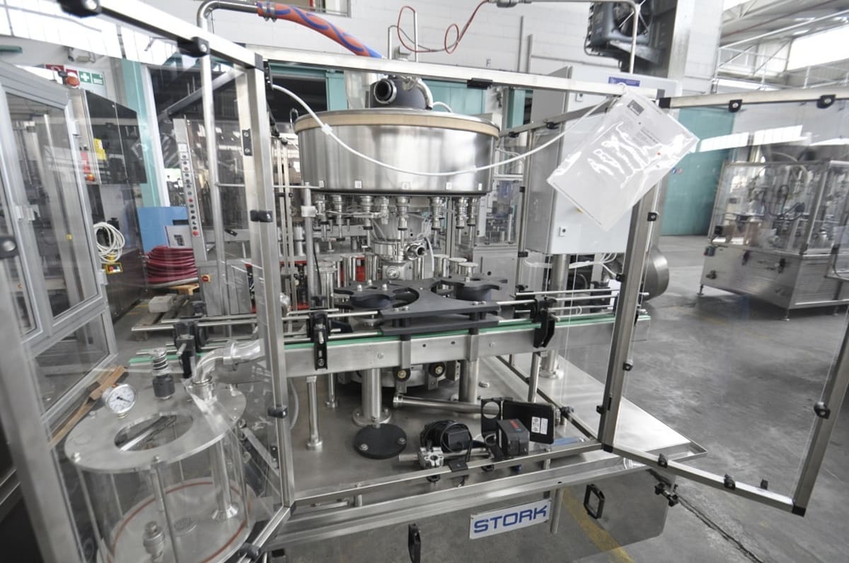 Technical detailsSpeed: 6000 Bottles/hourProducts: Wine (Still)Containers: Glass, PETFormats: 0.187 L PET bottleSafety features: YesManuals: YesFill type: Gravity/light depressionNeck type: 22 mmConsisting of: - Conveyors ConpartThe line ensures seamless movement of bottles using conveyors with suction systems, stabilizing each bottle while maintaining a nominal capacity of 7200 bottles per hour. Filling Monoblock Euro Star LDG24-24-4V, Year 2014- Operates with a rinser / blower equipped with 24 clamps, enabling a secure grip on the bottle neck. The injection system prevents fluid flow when bottles are absent.- Fills wine using 24 stainless steel spouts, which manage slight vacuum and inert gas overpressure to maintain ideal filling conditions. As a result, the conical-bottomed tank ensures complete product discharge at the end of each cycle.Labeling Machine Conpart Arco M25 ...