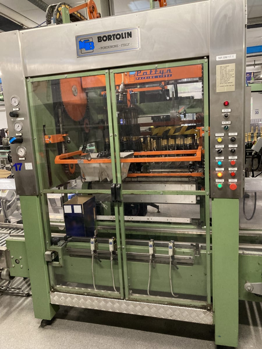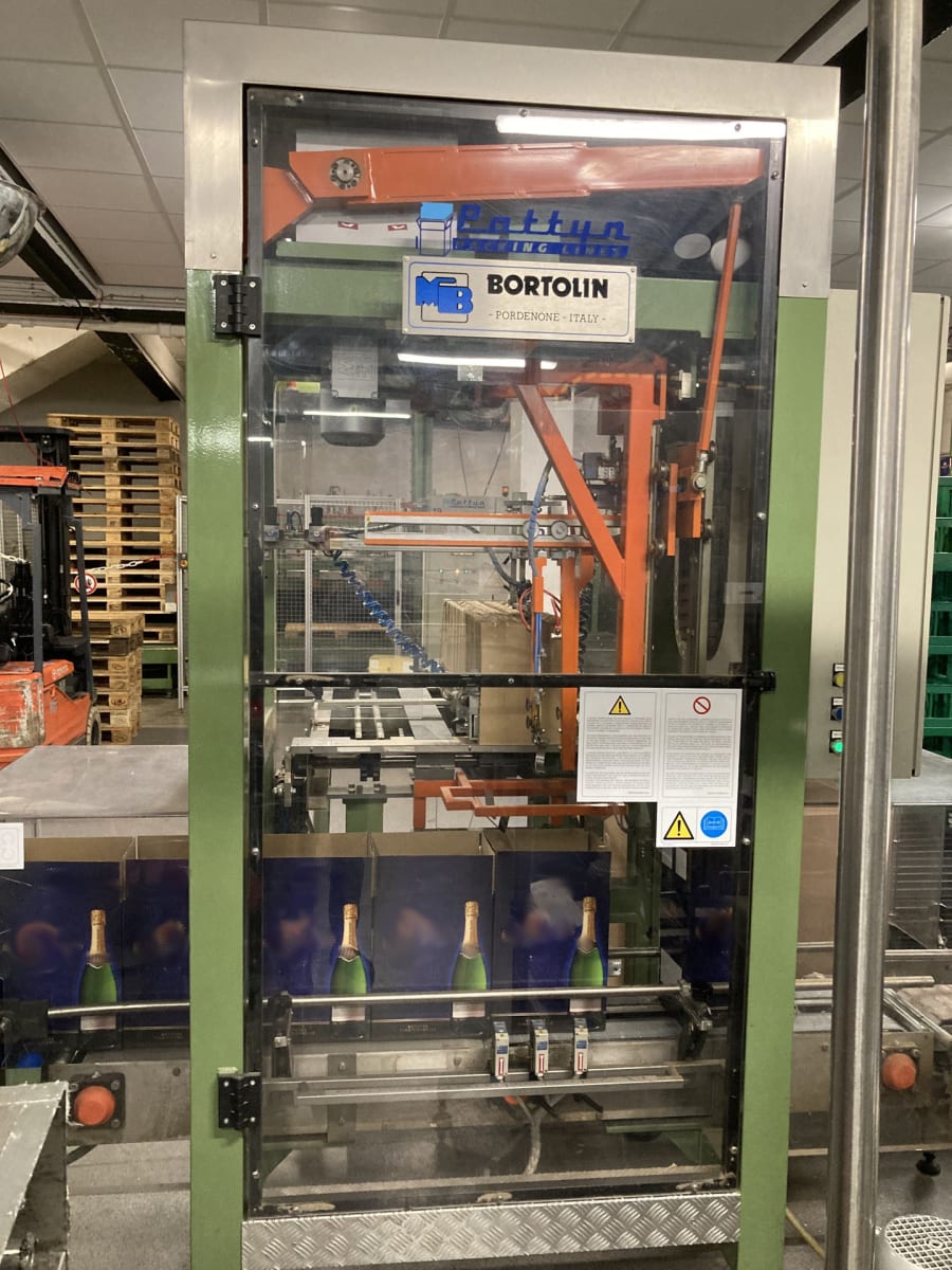 Packaging line for wine / sparkling wineconsisting of:- Carton erector Bortolin with Nordson hotmelt unit- Packer Bortolin (upright packaging for 20 cl / 75 cl wine & sparkling wine and horizontal packaging 75 cl sparkling wine)- Carton weigher = Sautelma Minismart- Carton sealer Bortolin with Nordson hotmelt unit including the conveyor belts between the machines.The line will be in operation until 20 December and will then be uninstalled.More then 300 machines new and second hand on our seema .de