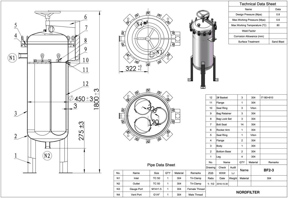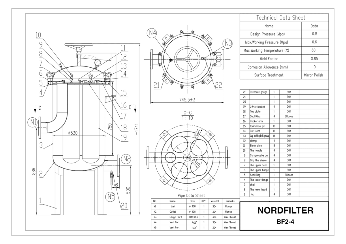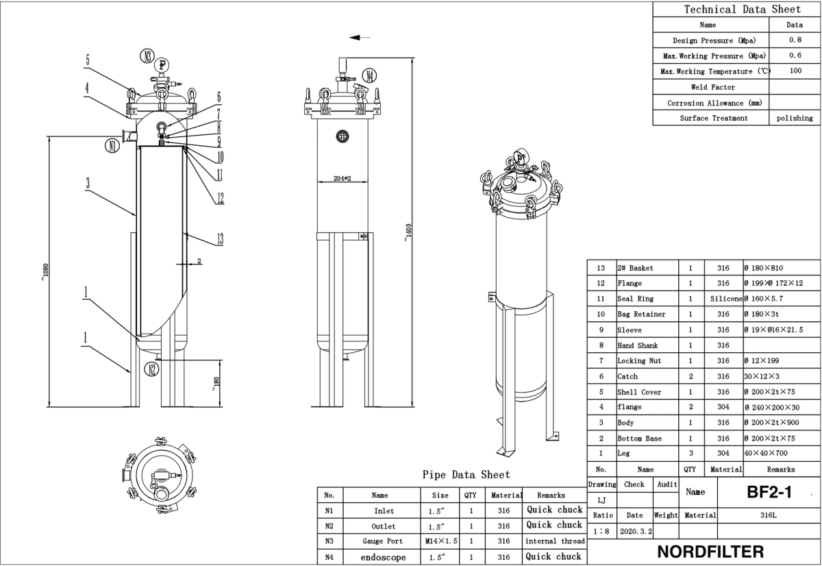Beutelfilter für Beutel Typ #2Material: Edelstahl Typ 304Druck: 8 BarMore then 300 machines new and second hand on our seema .de