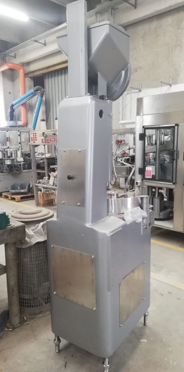 incl. dispenser Working direction: left-rightNumber available (price per tank): 1Capsule type: champagne cap applicator, champagne cap foldingcapacity / hour ca.: 4000working direction: rotating turret, left-rightWorking type: fullautomaticamount of capping heads: 4More then 300 machines new and second hand on our seema .de