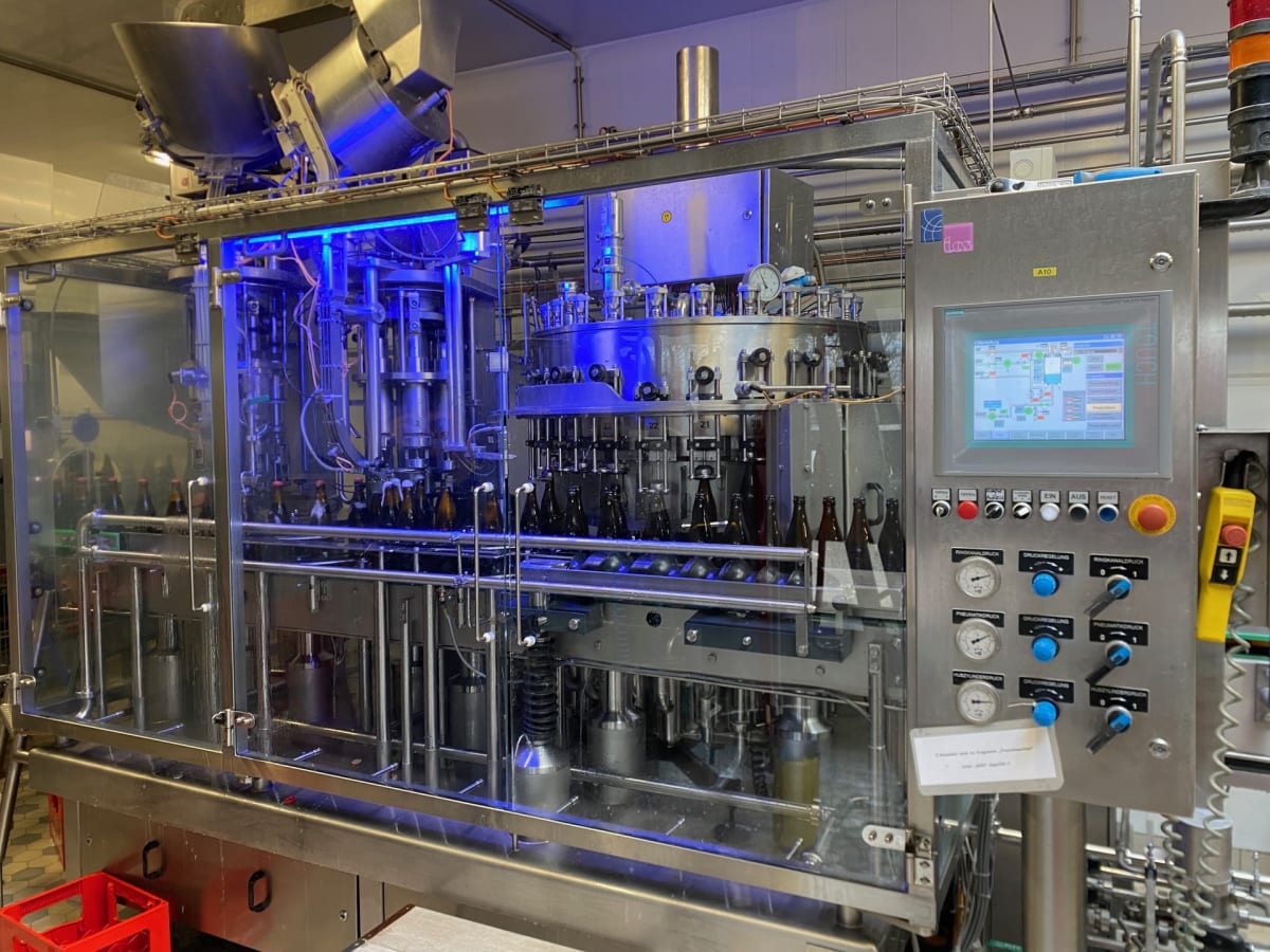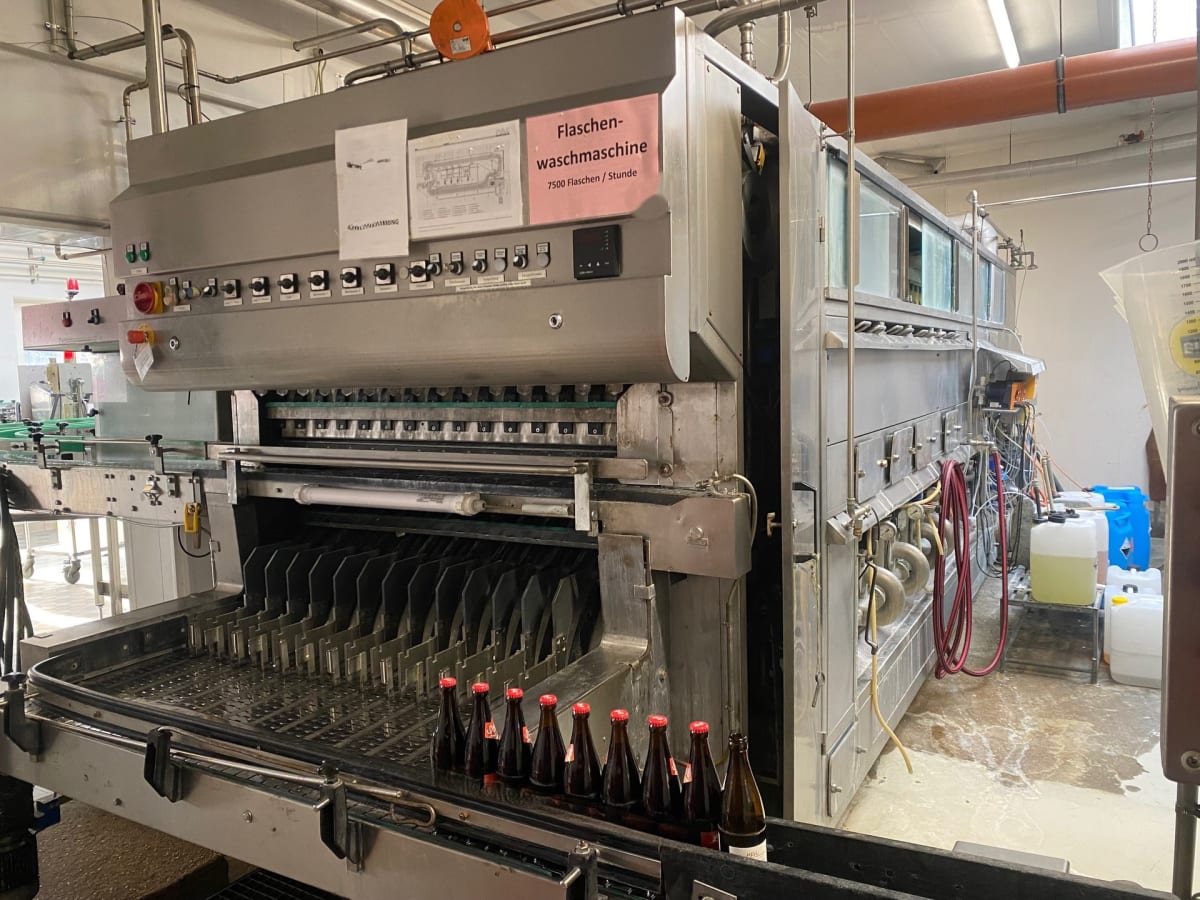 Depalletizer and Palletizer – Flema Star C-LCFor NRW and Euro crates as well as Euro and beer pallets, 500 crates/hour, Year: 1996, empty crates in from left, full crates out to the right.Crate Unpacker – RICO UNO 1-Head Type 124For NRW and Euro crates, head suitable for Euro 0.5l, NRW 0.5l, and Ale 0.33l/0.5l bottles, 350 crates/hour, Year: 2010, right-to-left operation.Bottle Cap and Cork Remover – ADELSKI Type PPE 2005For NRW, Euro, and Ale 0.5l bottles, 2,000–12,500 bottles/hour, Year: , Operating hours: 8,500, right-to-left operation.Bottle Washer – PAC CB 14-0.5l-R-7 LII CompactFor NRW, Euro, and Ale 0.33l and 0.5l bottles, 7,500 bottles/hour, Year: 1998, Machine No. 125, Operating hours: 14,175.Bottle Inspection – SYSCONA LC 10 FDCaustic control + metal detection, Year: 2007.Filler – ICS multiFILL-VST (EP) 960-24-240-6KK-6SV-125.6For NRW, Euro, and Ale 0.33l and 0.5l ...