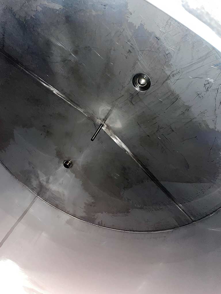 Tanque de água de serviço UTH de 60.000 litros feito de V2A isolado horizontal Propriedades: Volume 60000 L Comprimento total 6100 mm Comprimento do cilindro 4500 mm Altura total 4300 mm Diâmetro 4200 mm Material: V2A (AISI 304) 1.4301 Isolamento 150 mm Superfície fora do solo 2B = IIIC Superfície dentro do solo 2B = IIIC Design horizontal Número de pés 4 Descrição: Crista do tanque: Bola CIP Bico de ventilação Na frente: Indicador de nível com escala Poço de visita 440 x 340 mm Ganchos para escadas Drenagem residual com válvula de disco Termometria Subsolo: 4 pés de trompete com cúpulas - altura ajustável com endurecedor de copo de rolamento Termometria Atrás: Ligação Termometria