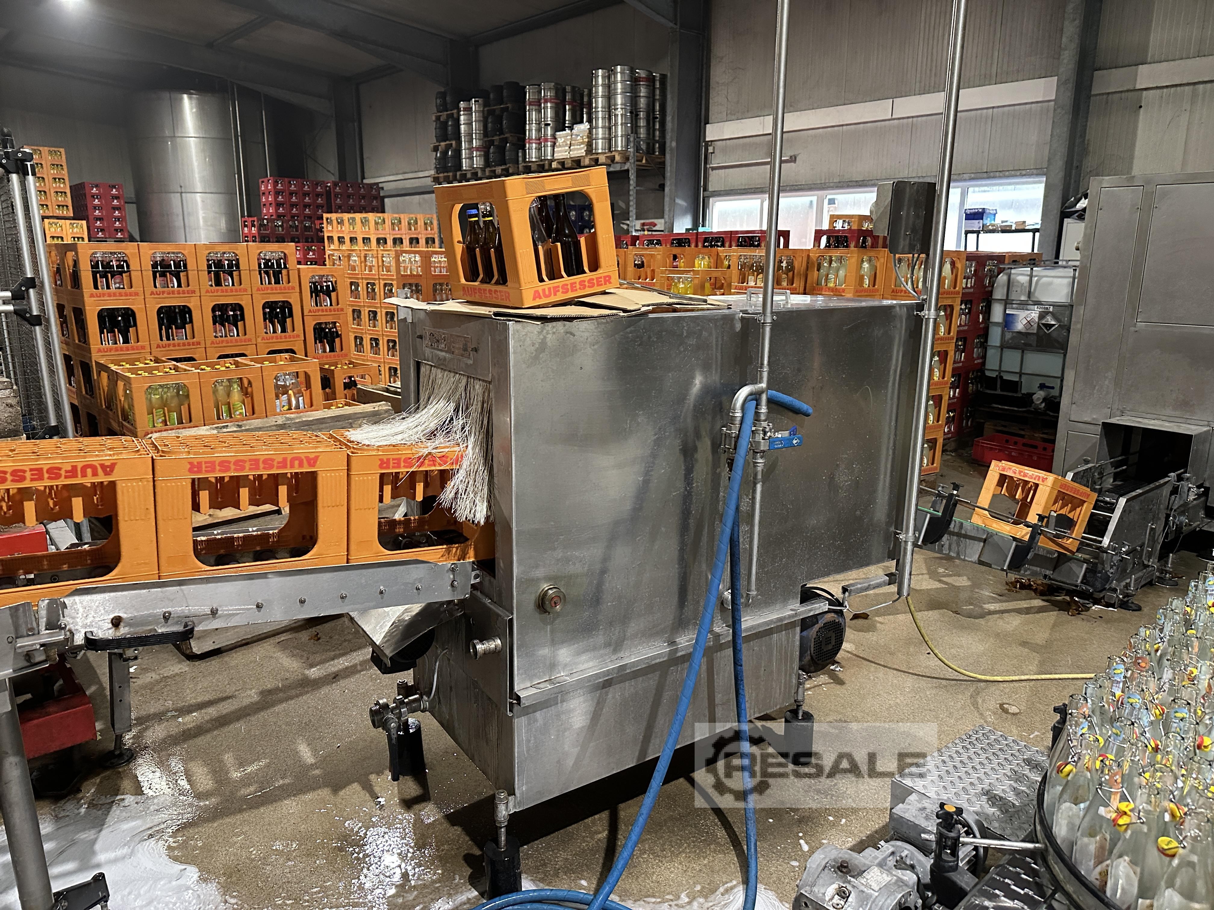 Para venda é uma máquina de limpeza de garrafas do fabricante MAG. A máquina é totalmente funcional e funciona sem problemas. O sistema tem sido regularmente reparado e está pronto para uso imediato. Especificações: - Fabricante: MAG – Schymanski - Designação do tipo: E-SPLX 12-D - Ano construção: 1998 - Capacidade: aprox. 5.000 gph -Coroa de flores: 0.50 l Euro garrafa Frasco NRW de 0,50 l Garrafa de 0,50 l com tampa oscilante Garrafa gourmet de 0,33 l Garrafa longneck de 0,33 l Frasco Vichy de 0,33 l - Material: V²A completo - Equipamento: operação contínua – eixos de pulverização rotativos - Sistema de amaciamento de água