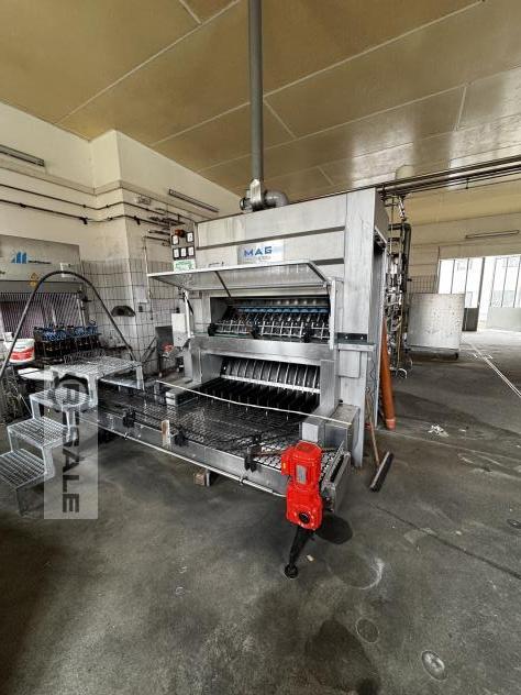 Para venda está uma máquina de lavar garrafas bem preservada da marca MAG. A máquina esteve em uso até cerca de 4 meses atrás e está disponível agora. Especificações: - Capacidade: 9.000 - 18.500 garrafas/hora - Ano: cerca de 1985 - Células de garrafa para 0,5 litros, NRW, Vichy - Banhos de água/cabeceira em aço inoxidável - Dimensões (CxLxA): 8,800x2,900x3,1600mm