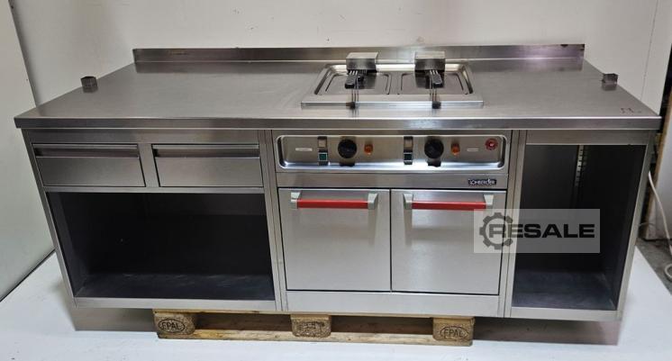 Mesa de trabalho Lohberger com fritadeira dupla Dimensões da mesa de trabalho Largura: 2000 mm Profundidade: 850 mm Altura: 750 mm Backsplash: 60 mm Tamanho da piscina Profundidade: 340 mm Largura: 220 mm Altura: 130 mm 380 volts 2 x 7500 watts Mais artigos - novos e usados - podem ser encontrados na nossa loja! Custos de envio internacional sob consulta!