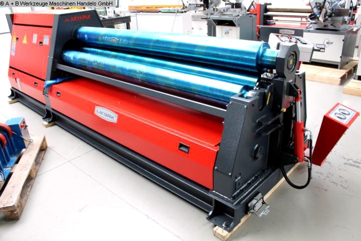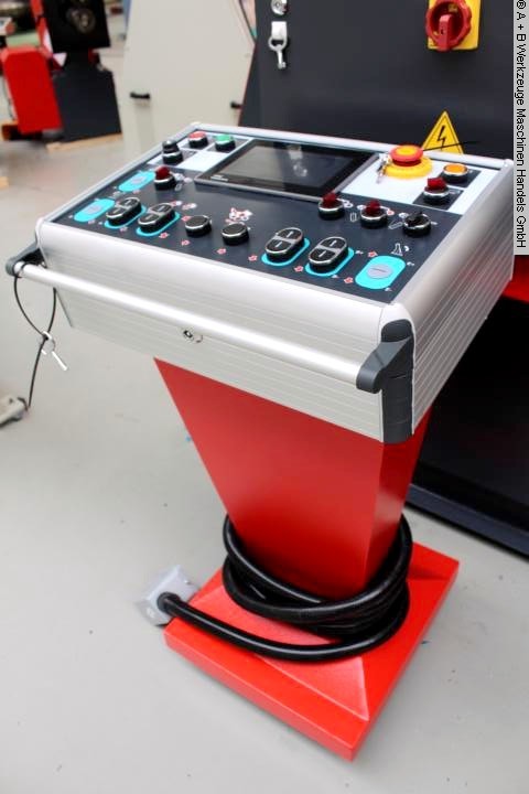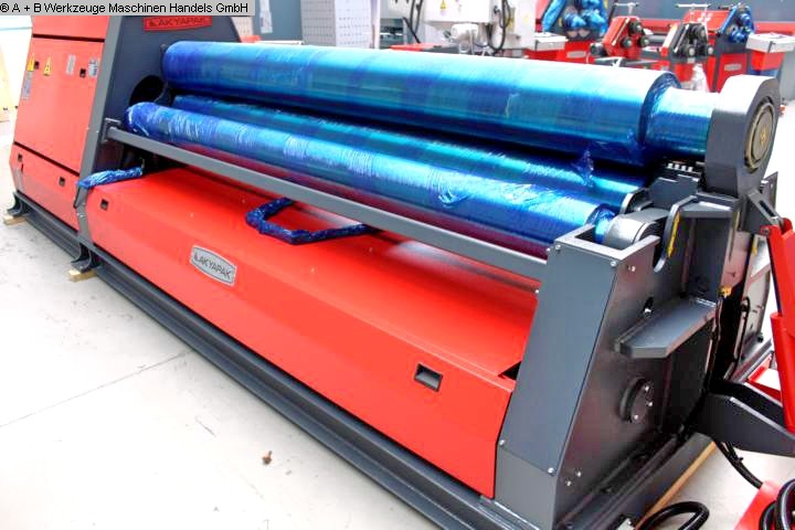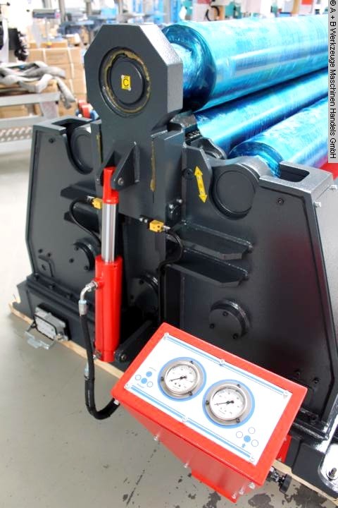 sheet width: 3100 mmplate thickness: 6.0 mm STpre-bending: 4.0 mm STdiameter of upper rolls: 200 mmside roll diameter: 165 mmdiameter of lower rolls: 190 mmbending speed: ca. 5.0 m/minControl: DIGI oil volume: 80.0 Litervoltage: 380 Vtotal power requirement: 6.0 kWweight: 6000 kgrange L-W-H: 5250 x 1500 x 1400 mm very good condition () Current new price approx. 80,000 euros Special price on requestFeatures:- Robust electro-hydraulic 4-roll bending machine 4-roll concept offers a wide range of bending and rounding options- MG swivel control panel Operation - control of all rolls and machine axes Digital position display Manual operation via joysticks- Two central rolls are driven directly by hydraulic motors- Conical rolling possible via inclined position of the rolls- Parallelism of the side rollers via torsion shafts- Bending on both sides- Diameters of up to 1.1 times the upper roller ...
