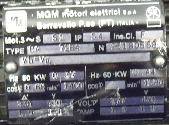Tipo de máquina: Electric motor 0.37 kW 1400 rpm