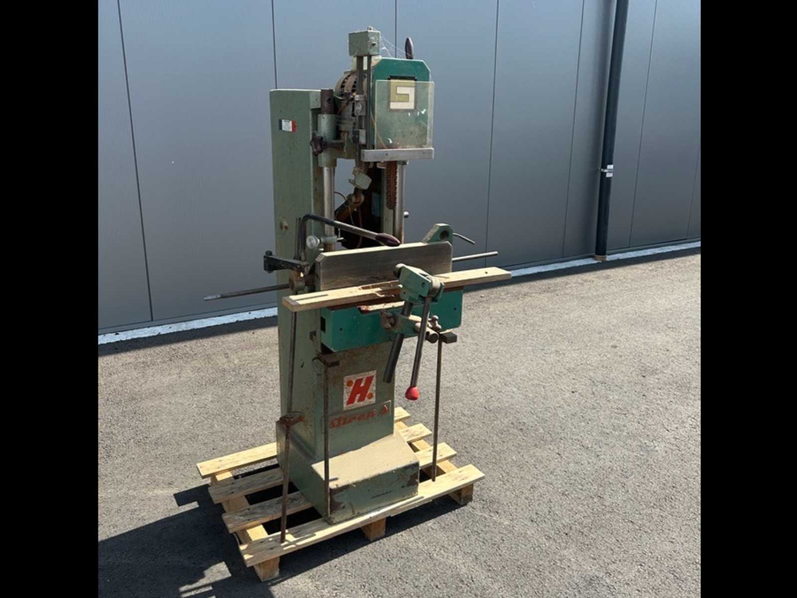 Gebr. Argamassa de corrente HEMA Tipo: MC40 Ano: 1995 Potência do motor: 2,2 kW (380V / 16A plugue) Profundidade de amortização: máx. 180 mm Largura da corrente: máx. 40 mm Comprimento da ranhura: máx. 230 mm Unidade de fresagem de curso transversal: 150 mm Inclinação da mesa: 45° A unidade de fresagem pode ser girada em 45° em ambos os lados Peso: 350 kg incluindo várias correntes e espadas, conforme indicado 2 alavancas de fixação já foram soldadas (ver as duas últimas fotos) Fabricante
