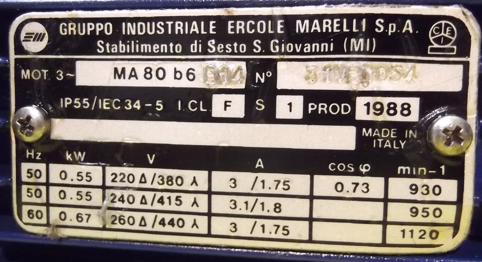 Tipo de máquina: Gear motor 0.55 kW 4 rpm