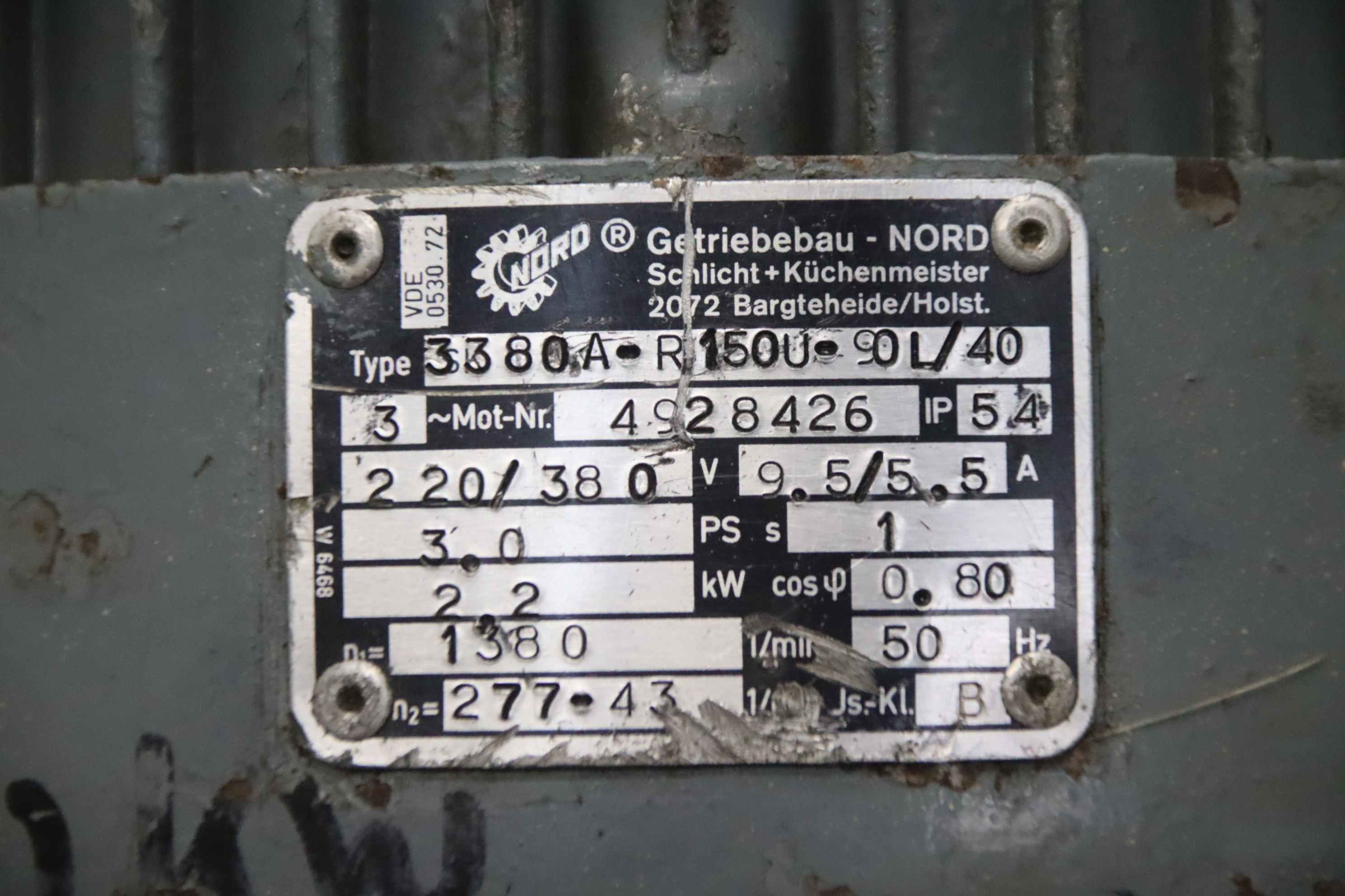 Tipo de máquina: adjustable gear motor 2.2 kW 277-43 rpm