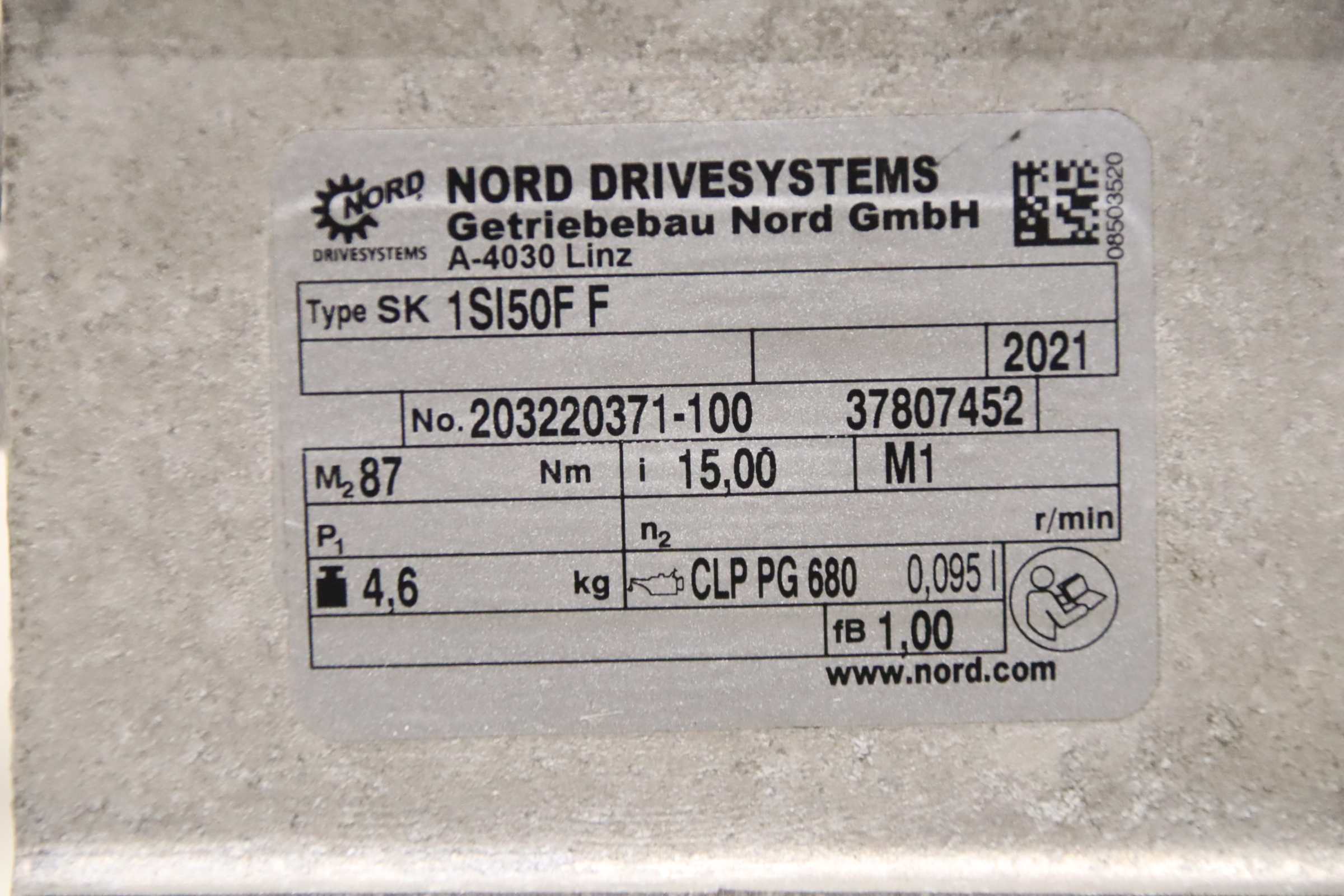 -Manufacturer of gearbox: Nord., type 1SI50F F i =15