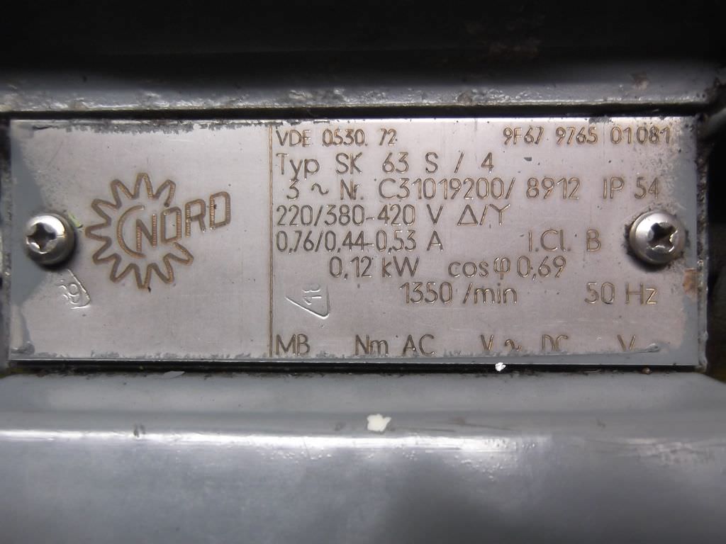 Tipo de máquina: Gear motor 0.12 kW 70 rpm