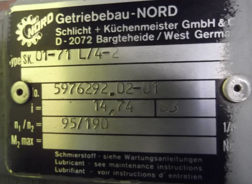 Tipo de máquina: Gear motor 0.3/0.43 kW 95/190 rpm