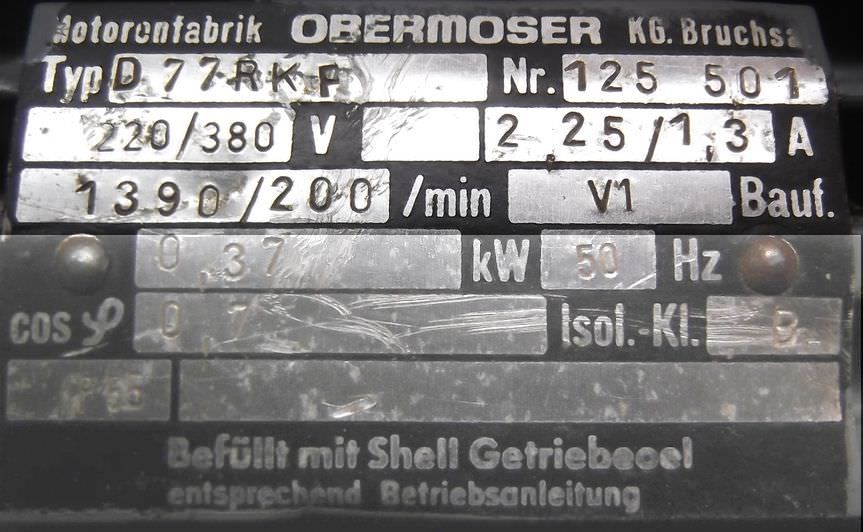 Tipo de máquina: Gear motor 0.37 kW 200 rpm