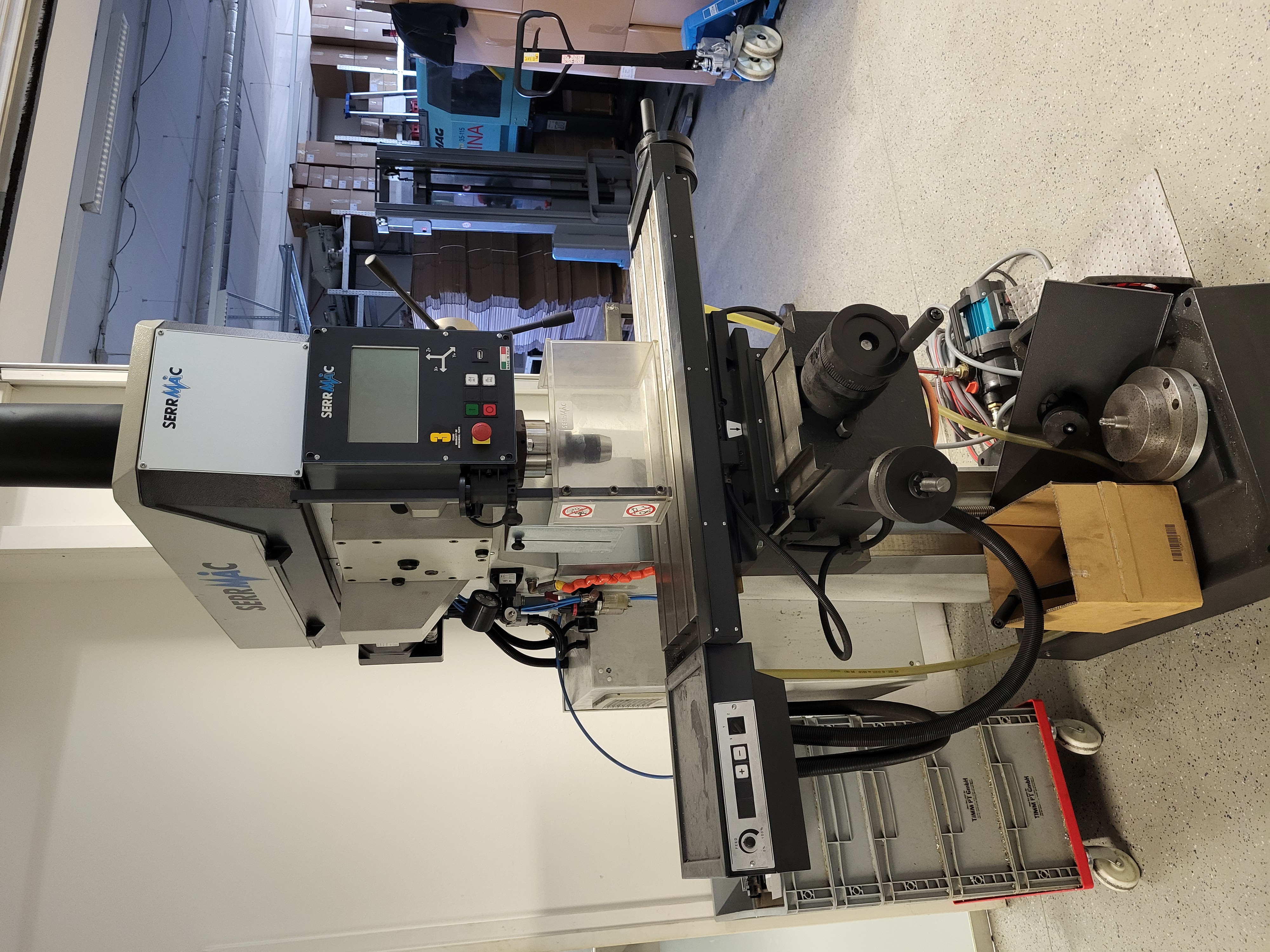 Machine Identity - Manufacturer: SerrMac Srl (Italy) - Model: AUTOMAX E - Year of Manufacture (Anno di Fabb.): 2021 - Weight (Massa): 860 kg --------------------------------------------------------------- What This Machine Does The SerrMac Automax E is a professional-grade CNC Drilling and Milling Machine. It is a versatile hybrid tool designed for precision metalworking. Specifically, it is built for: - Precision Drilling: High-capacity drilling into various metals. - Tapping: Creating internal threads in holes (typically used for screws and bolts). - Light Milling: Shaping metal by moving the workpiece against a rotating cutter on X, Y, and Z axes. - Automated Cycles: Being a "High-Tech" range model, it features programmable work cycles (like chip breaking or peck drilling) via a touch-screen interface, making it much more advanced than a standard manual drill press. -------------- ...