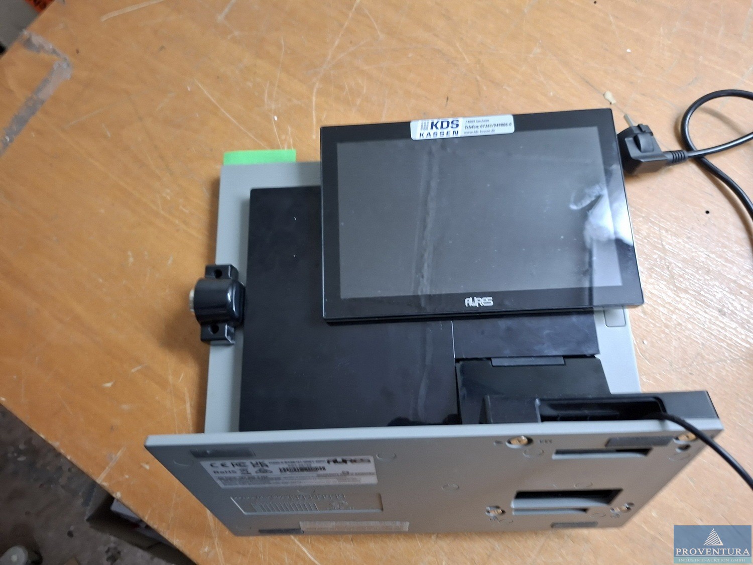 PC system from former POS workstation AURES Yuno 151, S/N TWASNH320089, Intel Celeron J1900, 4GB RAM, 60GB SSD, without software, Not suitable and/or intended for use within the meaning of § 146 AO, 1x cash drawer without key, without coin compartments, 1x receipt printer AURES ODP 333