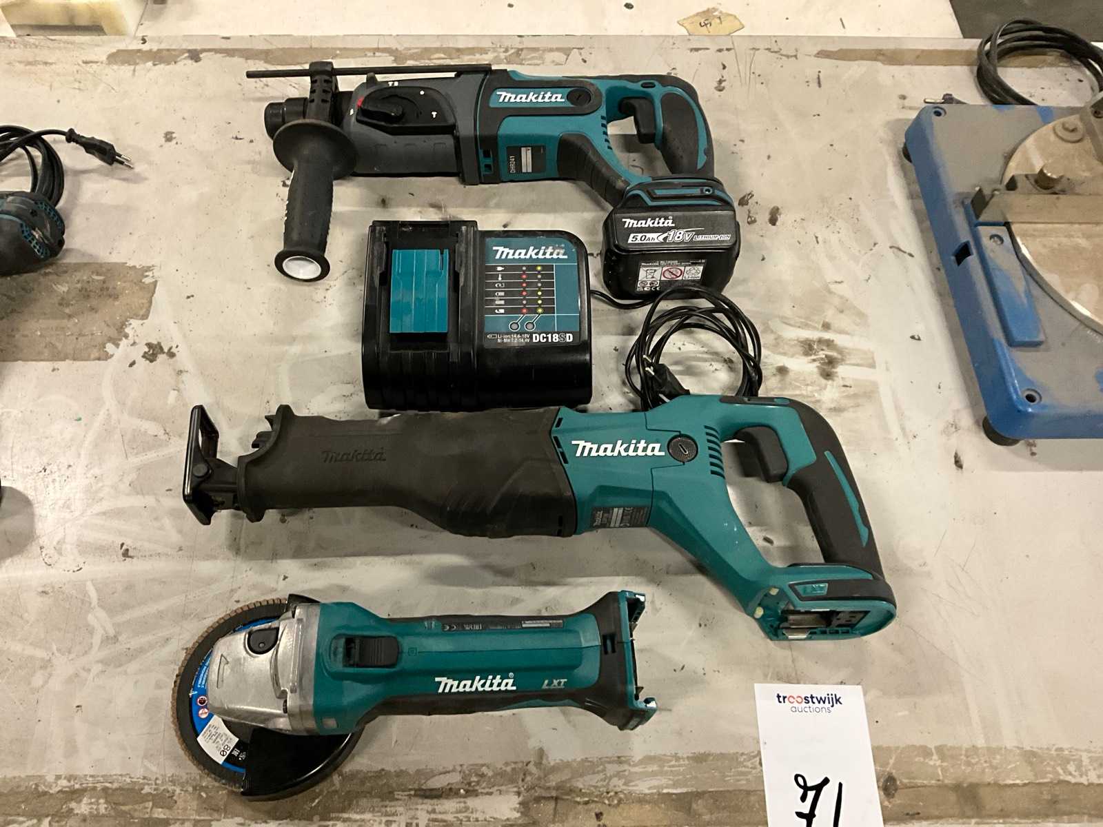 1x angle grinder DGA452 2021, 1x reciprocating saw DJR186 2021, 1x Impact drill DHR241 2021, 1x battery and 1x battery charger Auction-ID: A1-44279-71