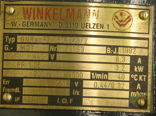 Three-phase motor, electric motor -Power: 160 kW -Speed: 2960 rpm -Voltage: 500 V (triangle) Protection class: IP 23 -Design: B3-B5 -Shaft: Ø 70 mm -For further data see photo nameplate -Weight: 830 kg