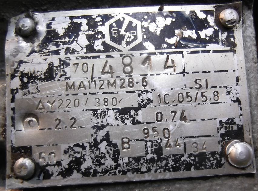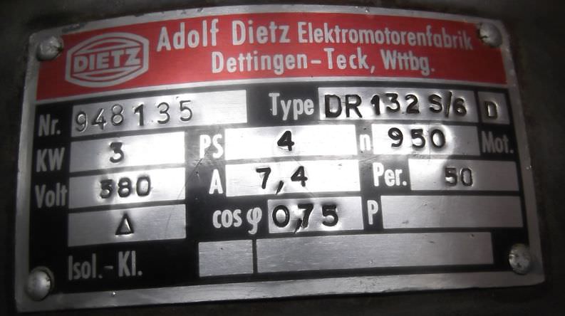 electric motor, three-phase motor -Power: 1.6 kW -Speed: 2740 rpm -Shaft diameter: 20 mm -Design: B5 -Protection class: IP 44 -Number: 2x Available -Price: per piece -Weight: 20 kg