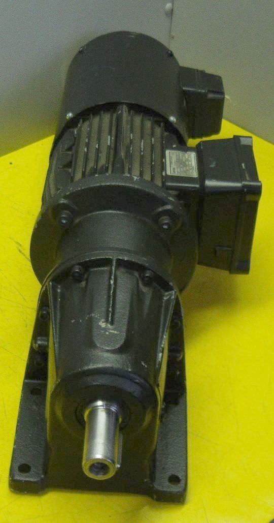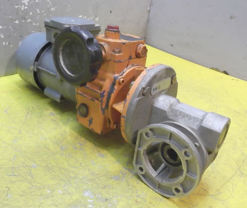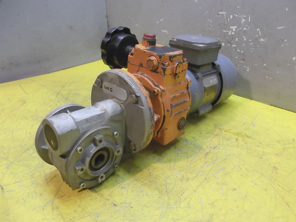 adjustable gear motor, variable speed gear motor, electric motor-Manufacturer gearbox Ercole Marcelli type: MVF44/F-Manufacturer Motor Elektrim Type: Sf63-2B-Motor power: 0.25 kW-Speed range: 50-265 rpm-Motor: adjustable-Design: B5 hollow shaft-Drive shaft: Ø 18 mm-Number: 1 piece of motors available-Price: per piece-Dimensions: 440/175/H190 mm-Weight: 11.4 kg