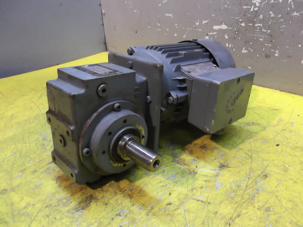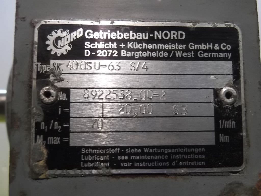 Gear motor, electric motor, three-phase motor, right-angle gear motor -Speed: 100 rpm -Power: 0.75 kW -Construction: B3 -Shaft diameter: Ø 48 mm -Protection class: IP 54 -Weight per piece: 44 kg
