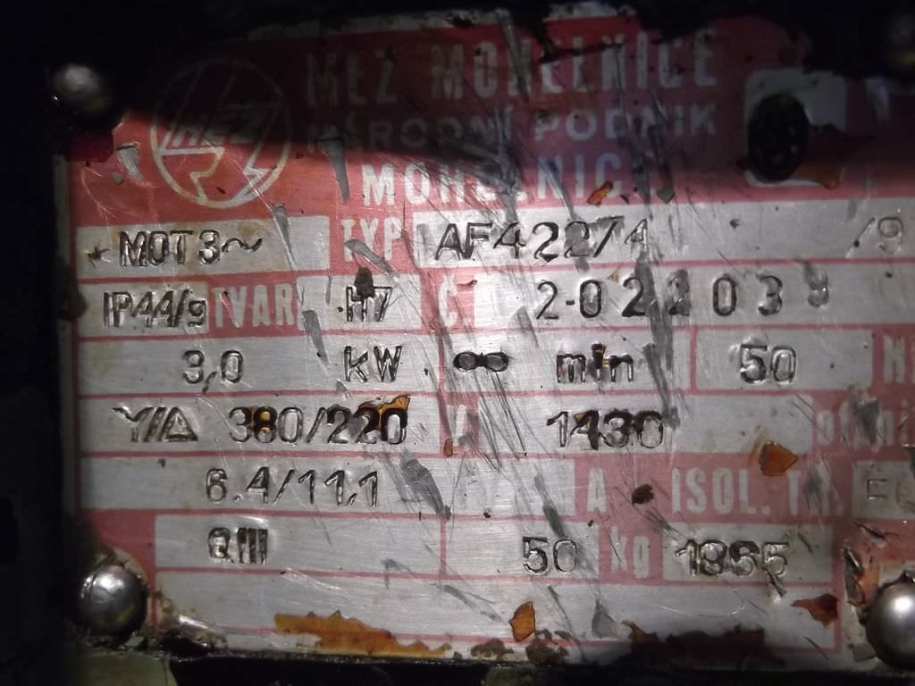 Electric motor, three-phase motor -Power: 0.75 kW -Speed: 1380 rpm -Shaft diameter: 19 mm -Construction: B14 -Protection class: IP 54 -Weight: 13 kg