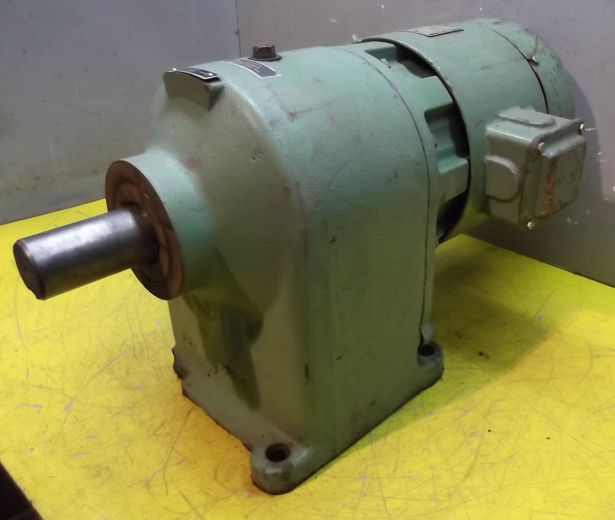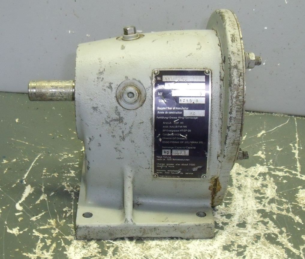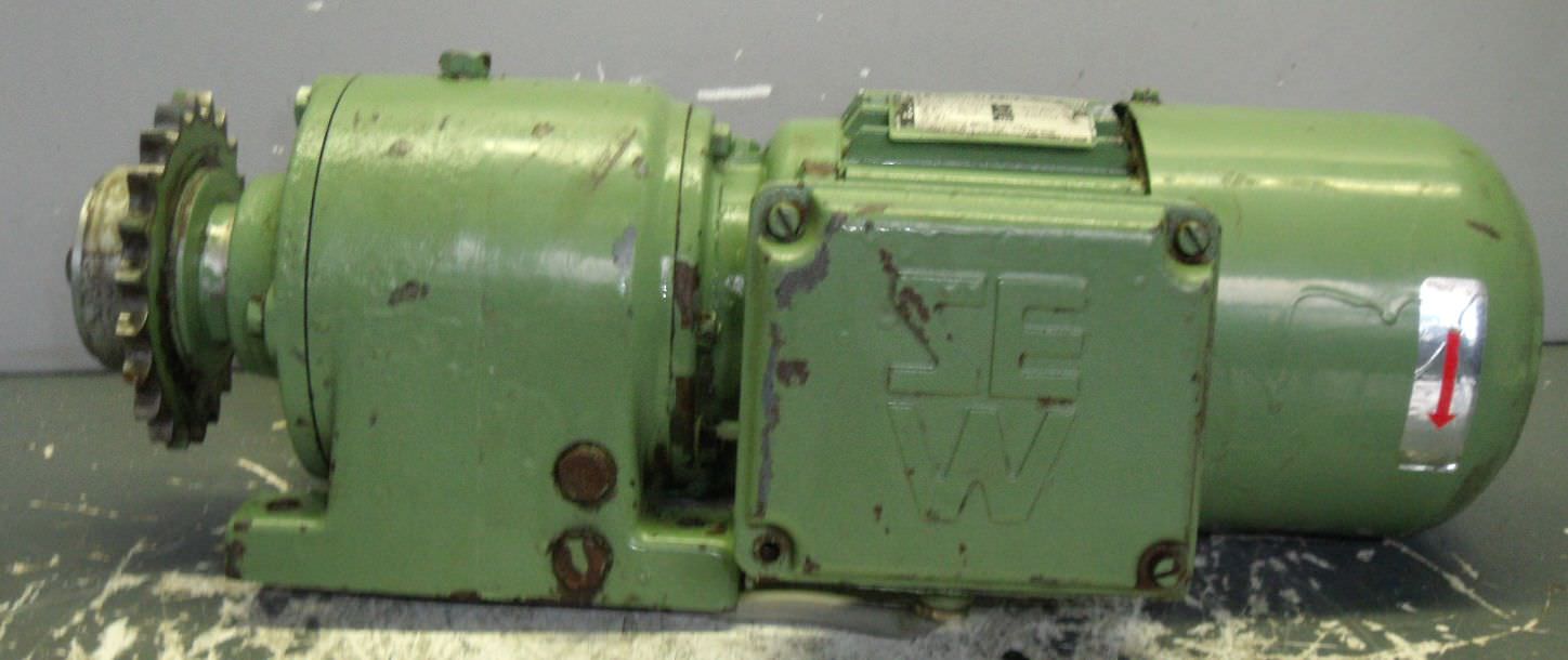 Gear motor, electric motor-Transfer in current condition as seen-Speed: 102 rpm-Power: 1.1 kW-Construction: B3-Diameter shaft: Ø 40 mm-Protection class: IP 33-Dimensions: 540/260/H300 mm-Weight: 52 kg