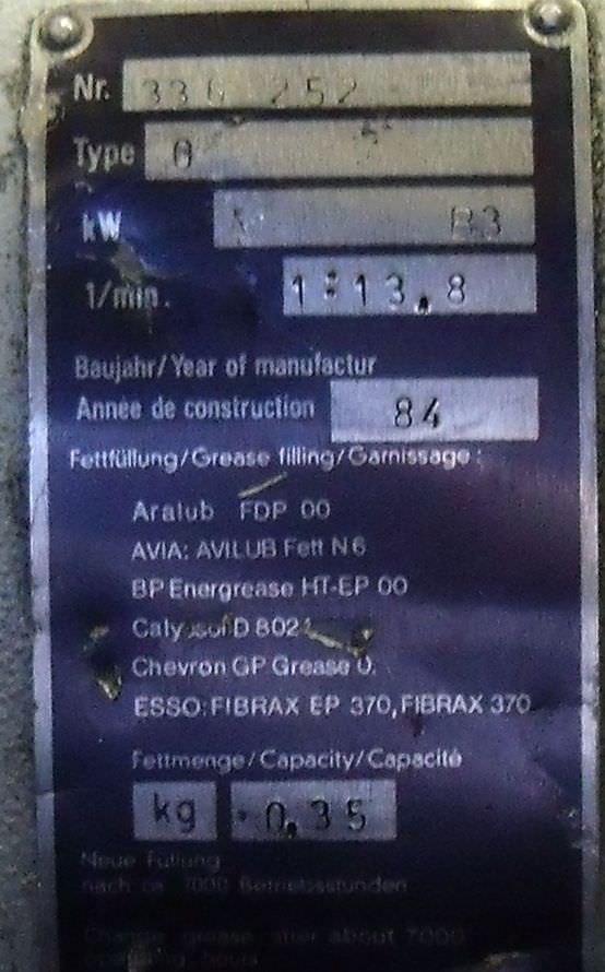 Gear motor, electric motor -Speed: 13 rpm -Power: 0.18 kW -Construction: B3 -Diameter shaft: Ø 20 mm -Protection class: IP 54/65 -Weight: 17 kg