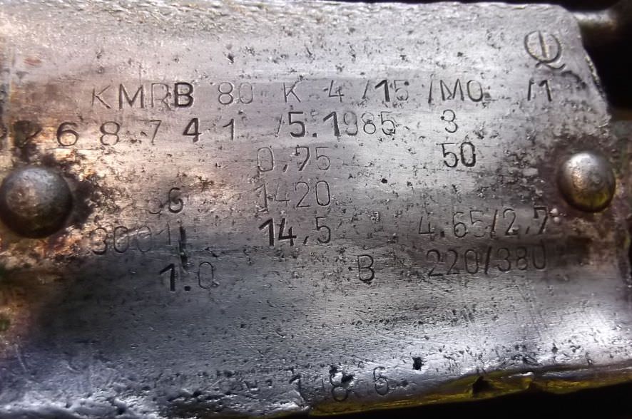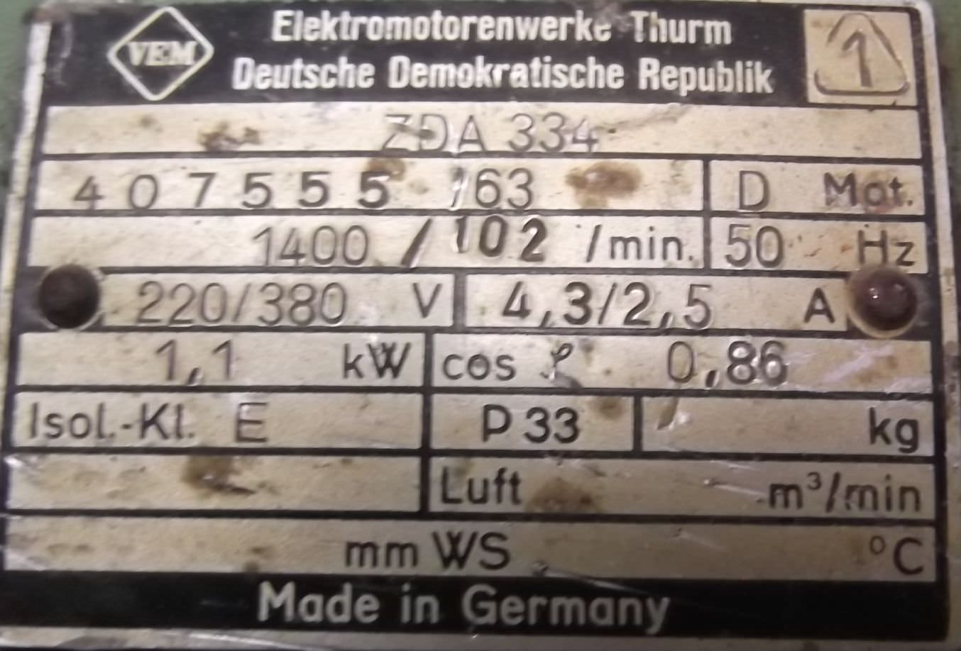 Electric motor, three-phase motor -Power: 0.37 kW -Speed: 1400 rpm -Shaft diameter: 14 mm -Construction: B5 -Weight: 6 kg