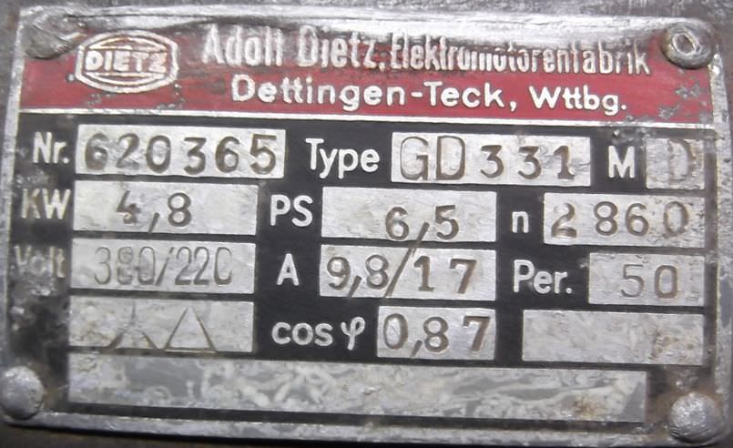 Electric motor, three-phase motor-Motor is for a Ehemann grinder-Transfer in current condition as seen-The foot is broken in one place-Electric motor: with 2 shaft outputs-Power: 4.8 kW-Speed: 2860 rpm-Shaft: Ø 30 mm-Wave length: 75/150 mm-Construction: B3-Protection class: --Dimensions: 540/340/H270 mm-Weight: 50 kg