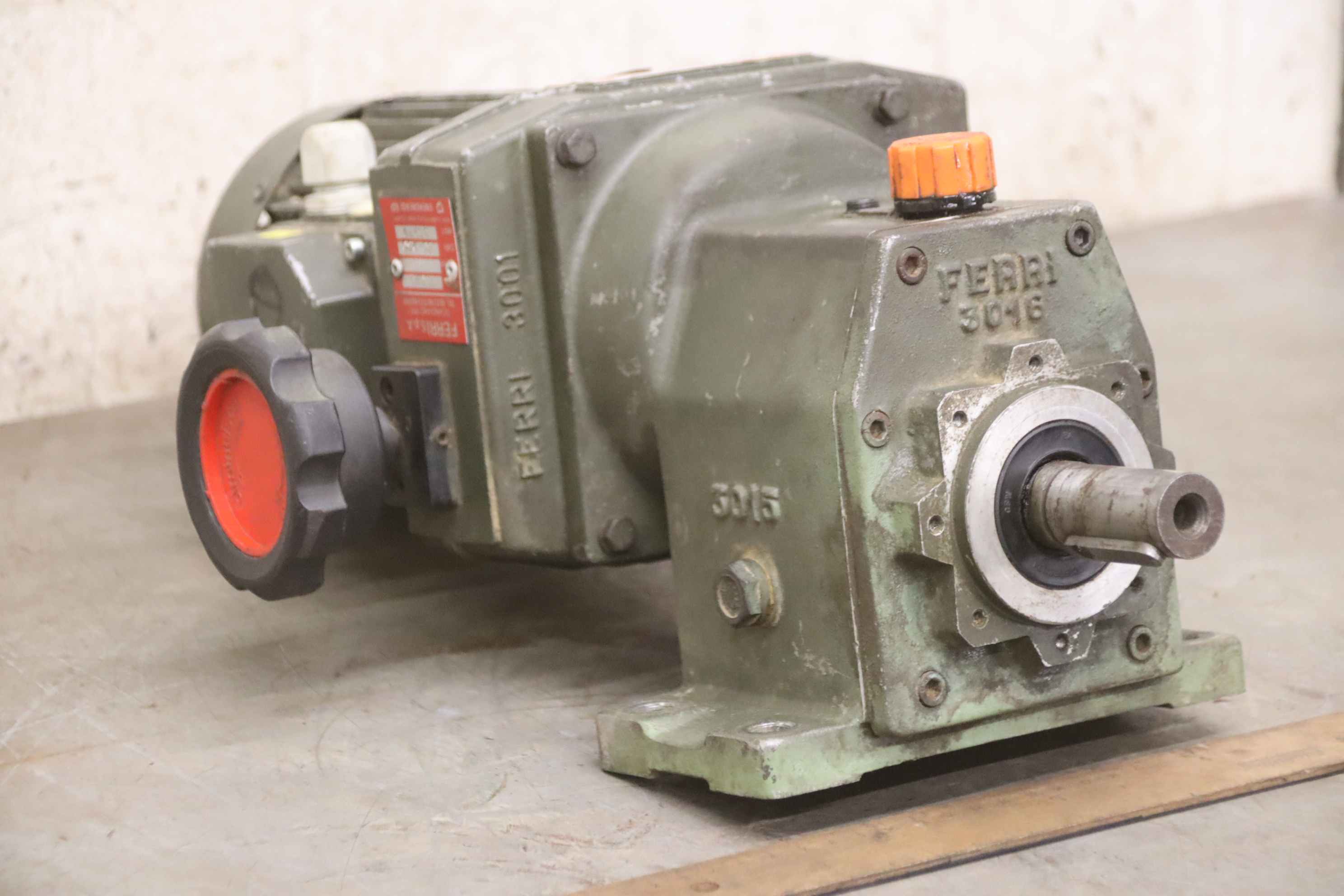 variable speed geared motor, variable speed geared motor, electric motor-Manufacturer gearbox: Ferri type F30/R-Manufacturer engine: MGM Type C 71D4-Motor power: 0.73 kW 1370 rpm-Speed range adjustable: 50-250 rpm-Drive shaft: Ø24 x 50 mm-Construction: B3-Dimensions: 490/260/H190 mm-Weight: 17 kg