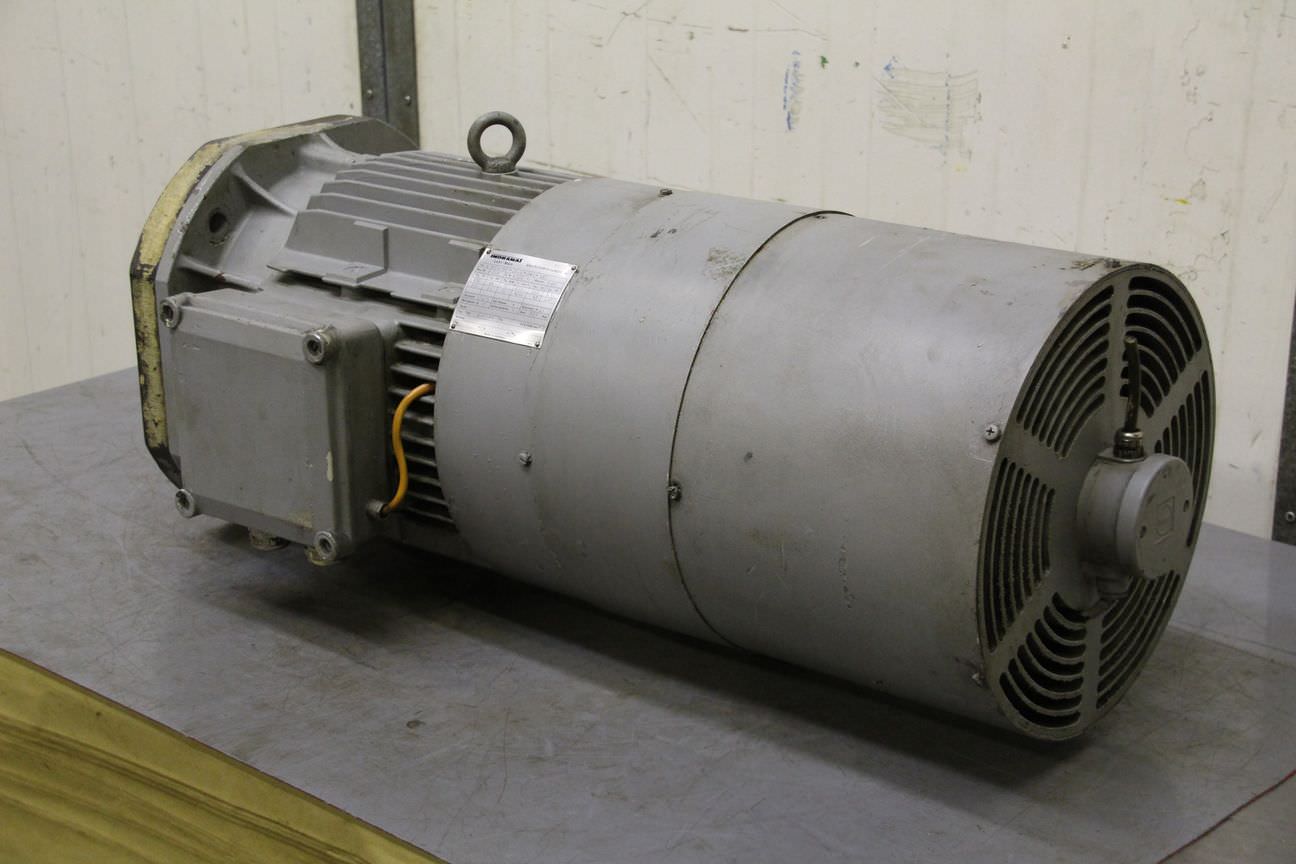 Shunt motor, three-phase motor, electric motor, motor for saddle stitchers, saddle stitching machine, speed-controlled, speed-controlled, slip-ring rotor, slip-ring rotor motor, brake motor-Handover: in the current condition as seen-Brense: out of order-Manufacturer: VEM, electric motor type BMRE 80 G 6-Power: 1.1kW-Speed: 930 rpm-Shaft: Ø 22 x 50 mm-Construction: B3-Protection class: IP44-Dimensions: 345/155/H200 mm-Weight: 20kg