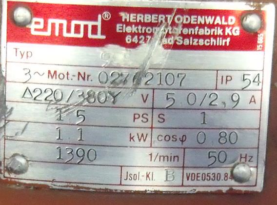 Electric motor, three-phase motor -Power: 1.1 kW -Speed: 1390 rpm -Shaft diameter: 24 mm -Construction: B3 -Protection class: IP 54 -Weight: 13 kg