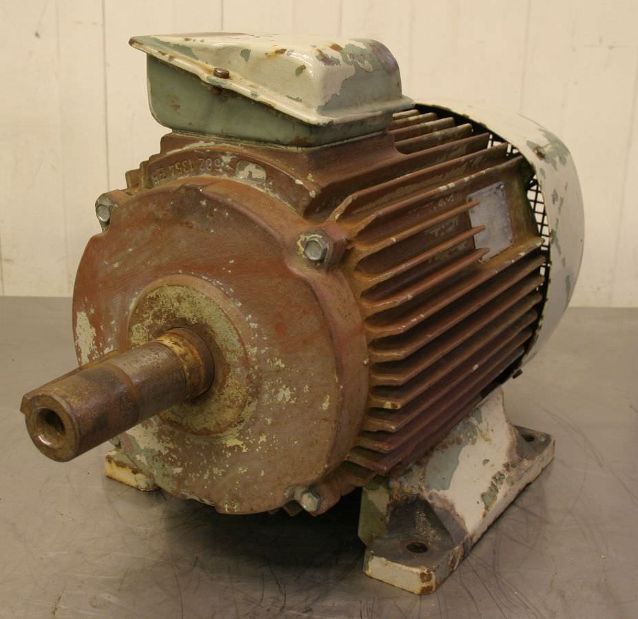 Three-phase motor, electric motor-Manufacturer: VEM, electric motor type KMR 132. M4 A-Power: 11kW-Speed: 1440 rpm-Voltage: 380V-Shaft: Ø 38/80 mm-Type: B5-Protection class: IP44-Number: 3x motor available-Price per piece-Dimensions: 525/285/H320 mm-Weight: 88 kg/pc.