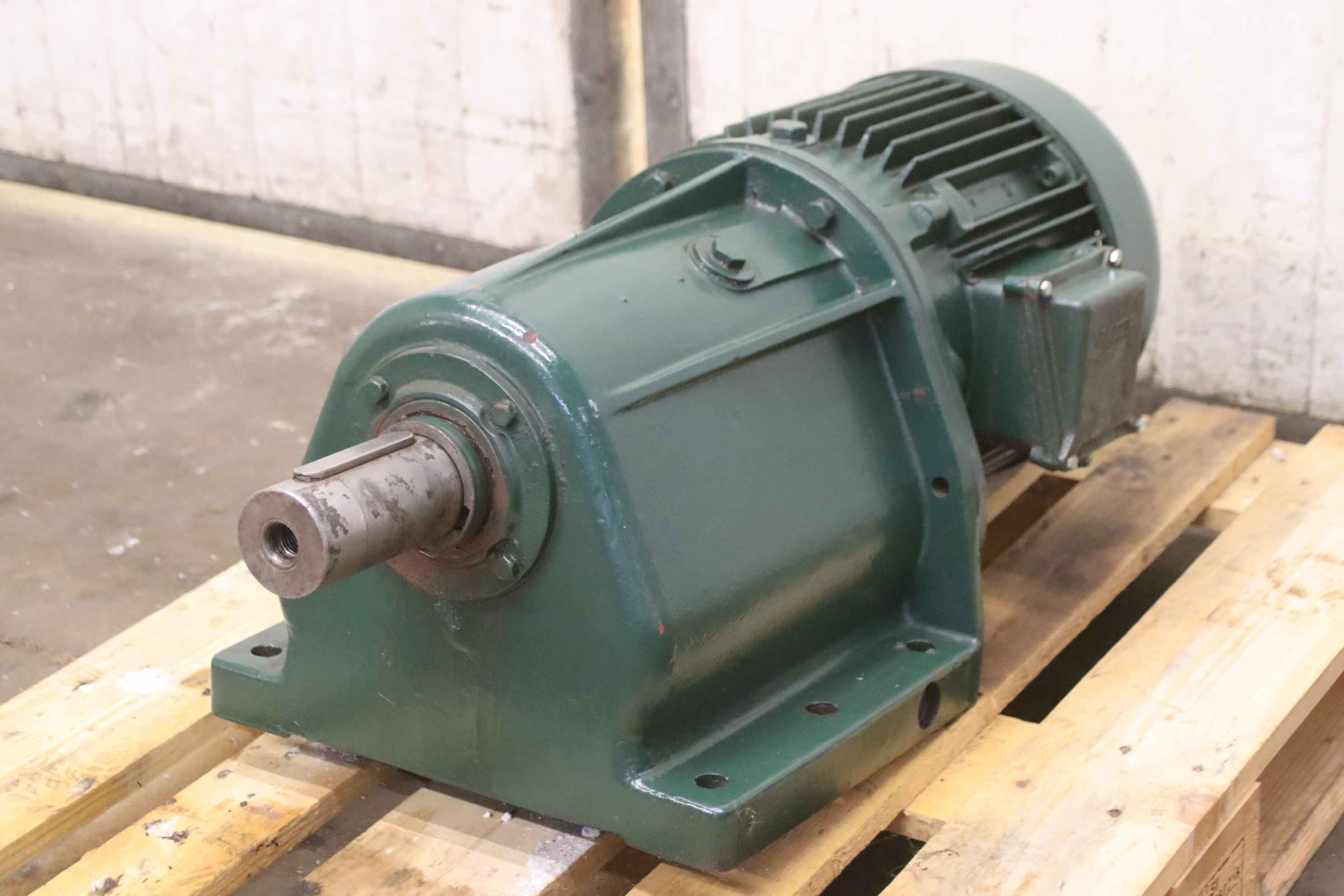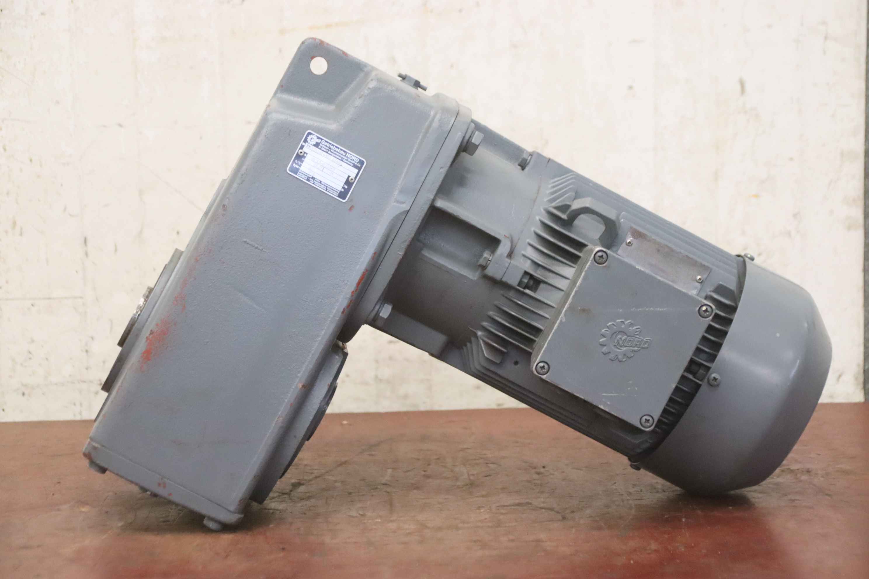 Gear motor, electric motor, three-phase motor, electric gear motor-Gear motor: from automatic cutting machine Bierrebi TA 103-Manufacturer gearbox: Bonfiglioli type MVF 49/P-Speeds: approx. 103 rpm i= 1:14-Manufacturer Motor: Electro Adda-Power: 0.18 kW / 1450 rpm-Construction: B5 angle-Hollow shaft: Ø 25 x 80 mm-Protection class: IP 54-Dimensions: 325/125/H175 mm-Weight: 7.9 kg