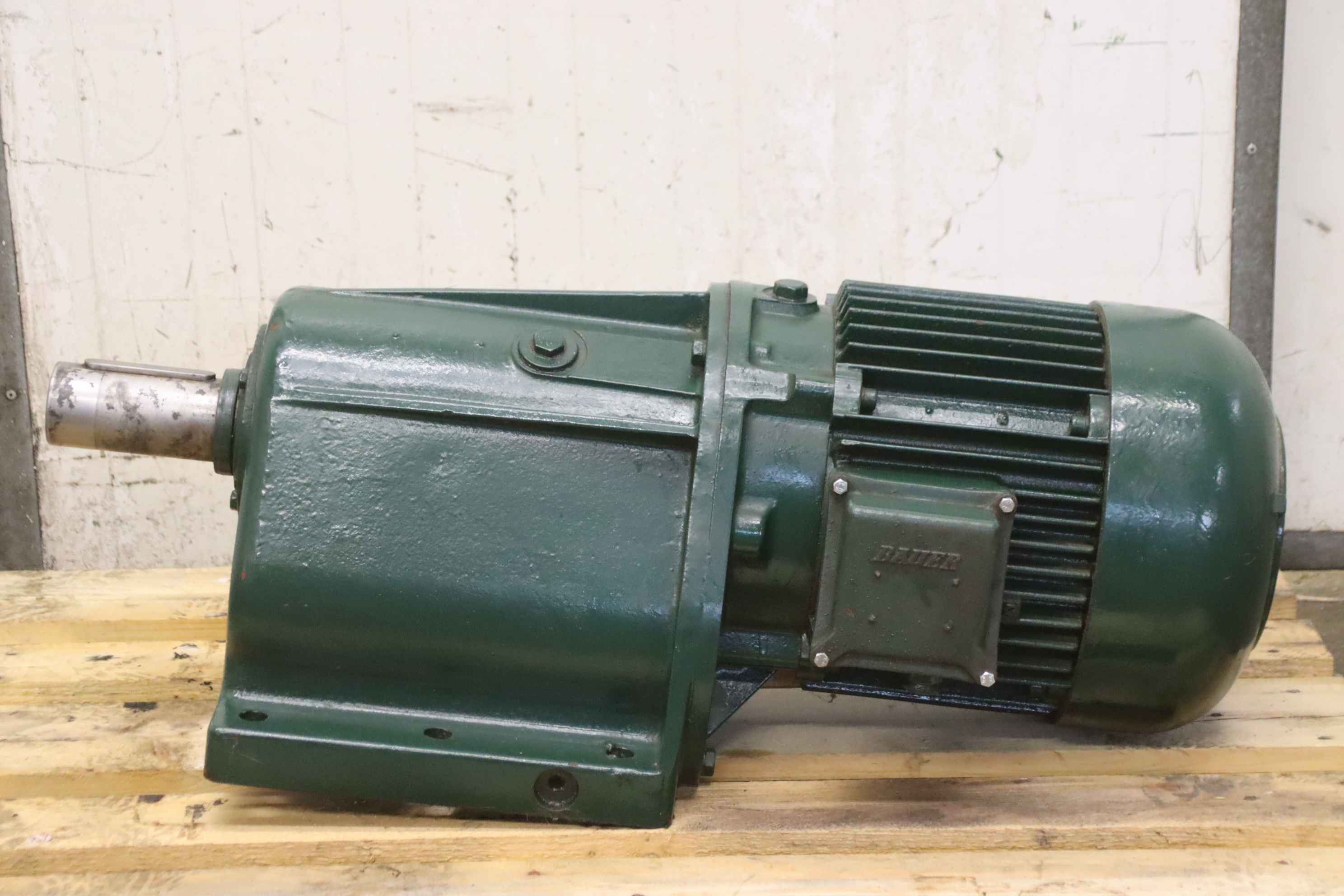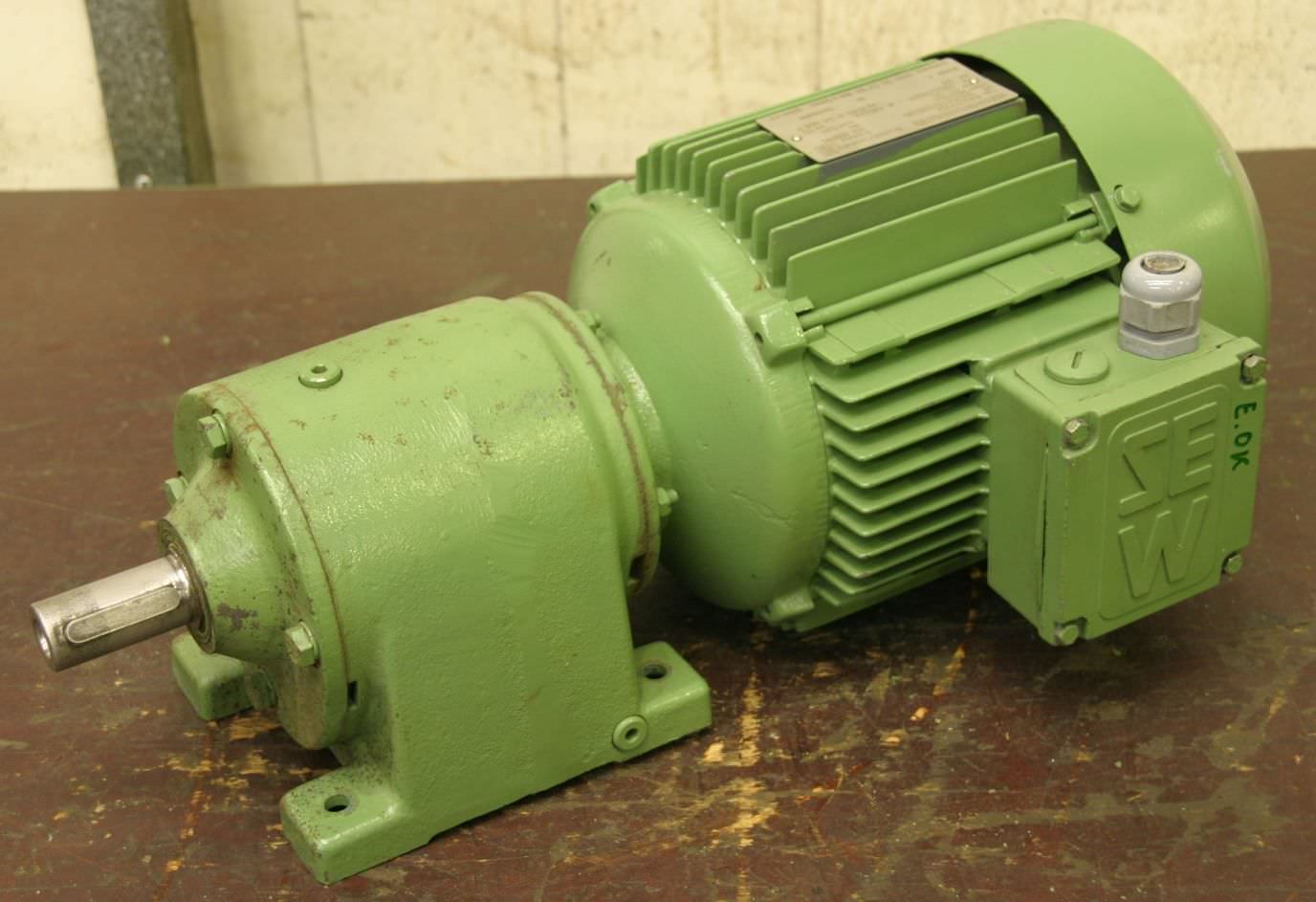 Gear motor, electric motor, electric gear motor, worm gear motor -Manufacturer: Eberhard Bauer, gear motor -Type: unfortunately no type designation approx. 5.5 kW -Speed: 56 rpm -Power: rpm -Shaft: Ø 65 x 120 mm -Design: B3 -Dimensions: 930/410/H375mm -Weight: 212 kg