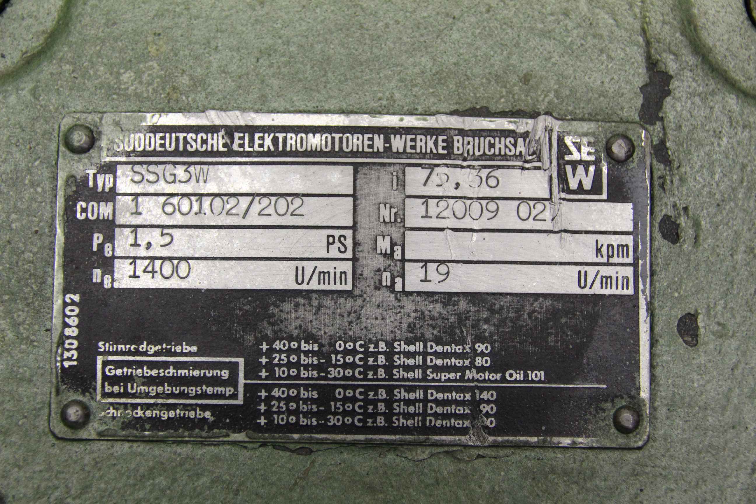 Gear motor, electric motor, electric gear motor, worm gear motor, parallel shaft gear motor -Manufacturer: Nord, gear motor -Gearbox: Type SK 2282A/3D-100LH/4 3D TF i= 24.97 -Speed: 57.84 rpm -Engine: Type SK 100LH/4 3D TF -Power: 2.20 kW / 1445 rpm -Protection class: IP55 -Shaft: Ø 35 x 140 mm -Number: 3x motor available -Price: per piece -Dimensions: 1060/400/H540 mm -Weight: 53 kg/piece