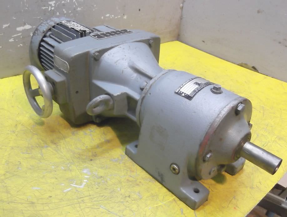 adjustable gear motor, variable speed gear motor, electric motor -Motor power: 0.75 kW -Speed range: 17 to 102 rpm -Motor: adjustable -Construction: B3 -Diameter shaft: 22 mm -Dimensions: 480/450/H200 mm -Weight: 38 kg