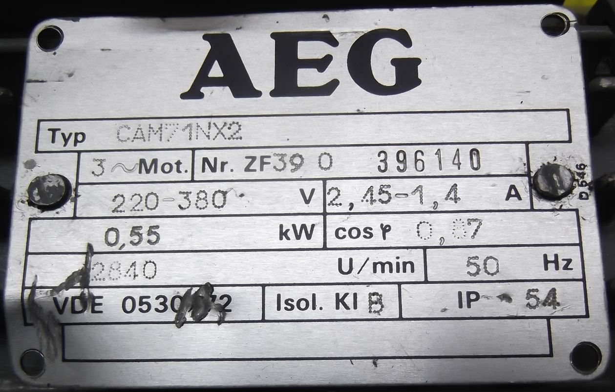 adjustable gear motor, variable speed gear motor, electric motor -Motor power: 0.37 kW -Speed range: 190-1000 rpm -Motor: adjustable -Shaft: Ø 14 mm -Design: B5 -Number: 4 motors available -Price: per piece -Dimensions: 460/200/H200 mm -Weight: 22 kg