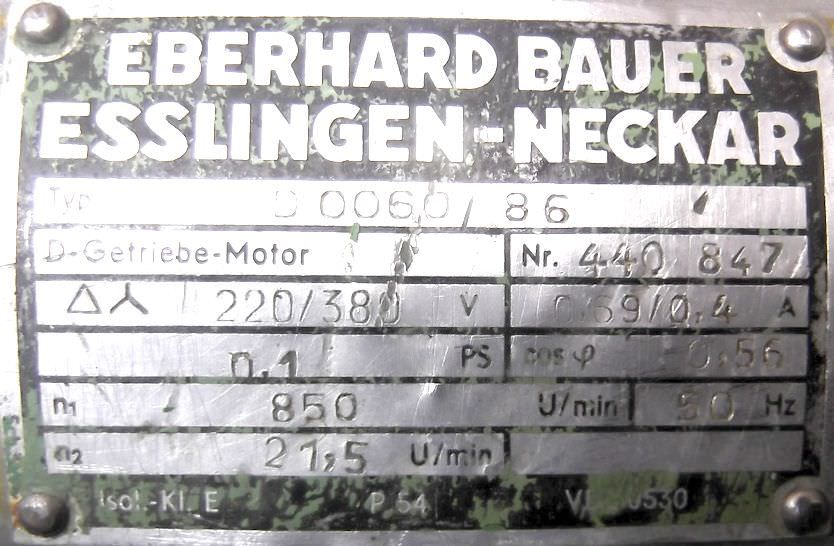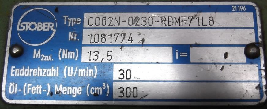 Gear motor, electric motor-Speed: 8.5 rpm-Power: approx. 0.18 kW-Construction: B3-Diameter shaft: Ø 40 mm-Protection class:-Dimensions: 565/255/H255 mm-Weight: 44 kg