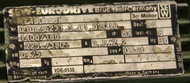 Gear motor, electric motor-Speed: 37/74 rpm-Power: 0.2/0.4 kW-Construction: B5-Diameter shaft: Ø 20 mm-Protection class: IP 65-Price: per piece-Number: 1x available-Dimensions: 345/200/H185 mm-Weight: 14 kg
