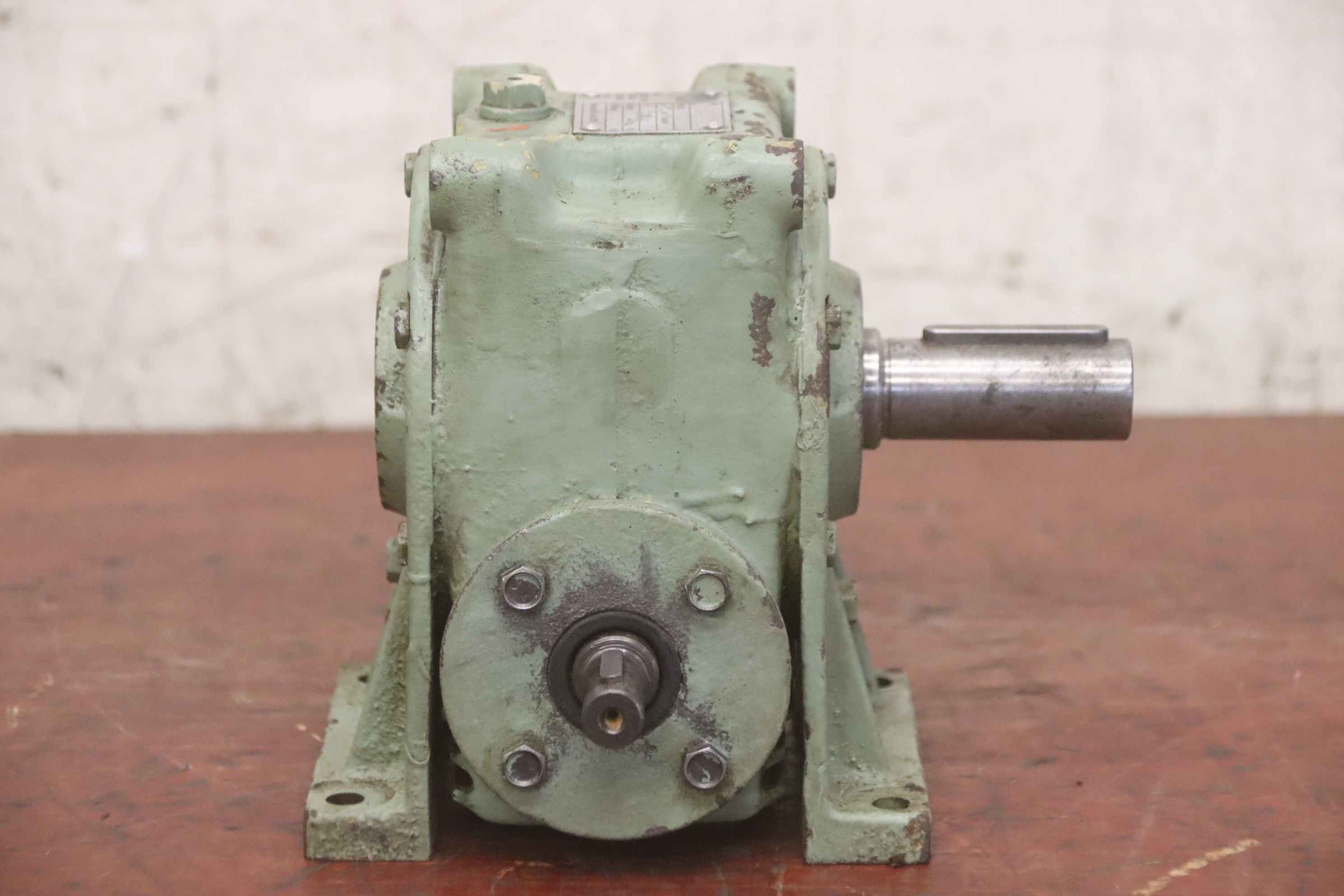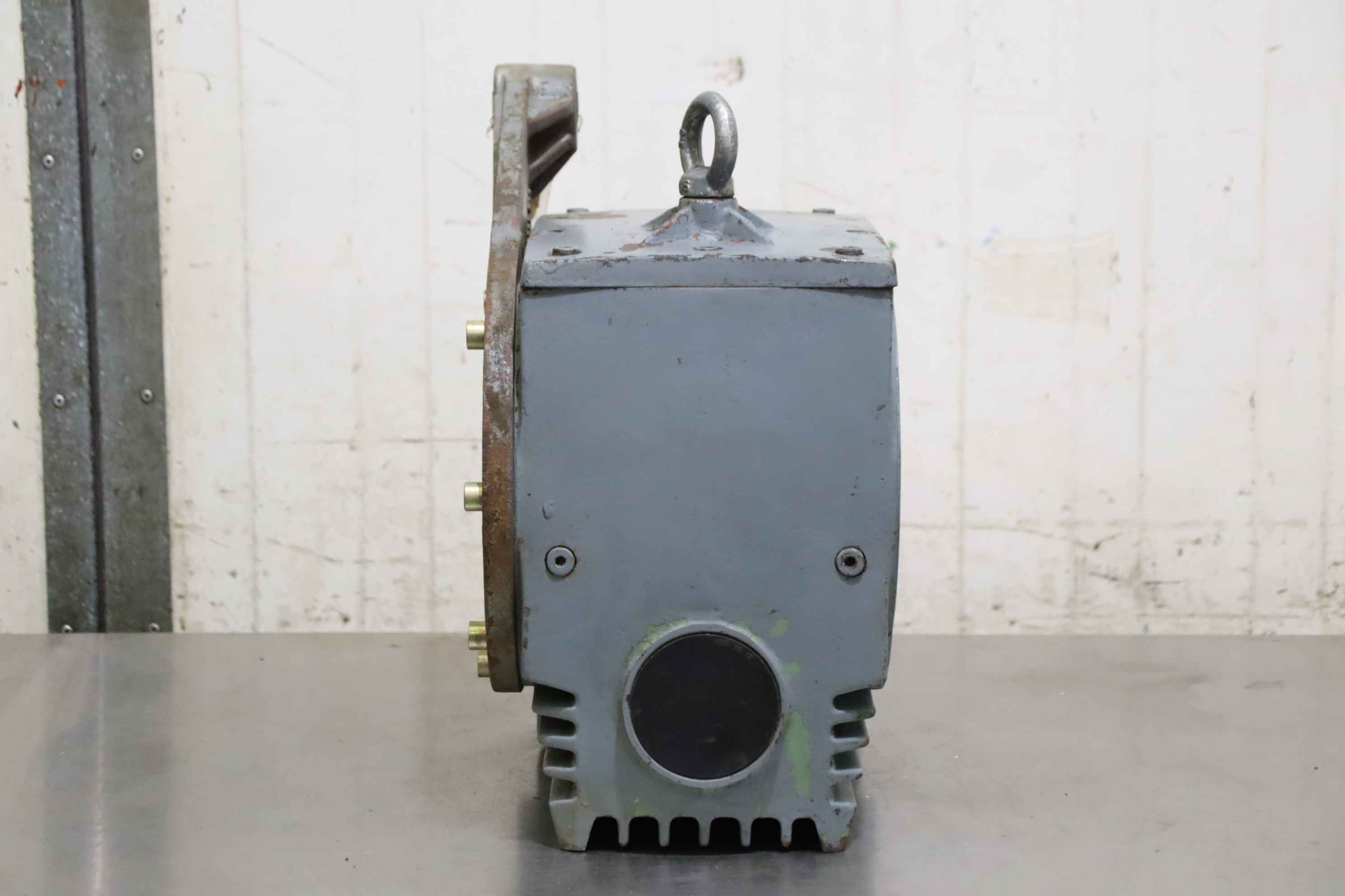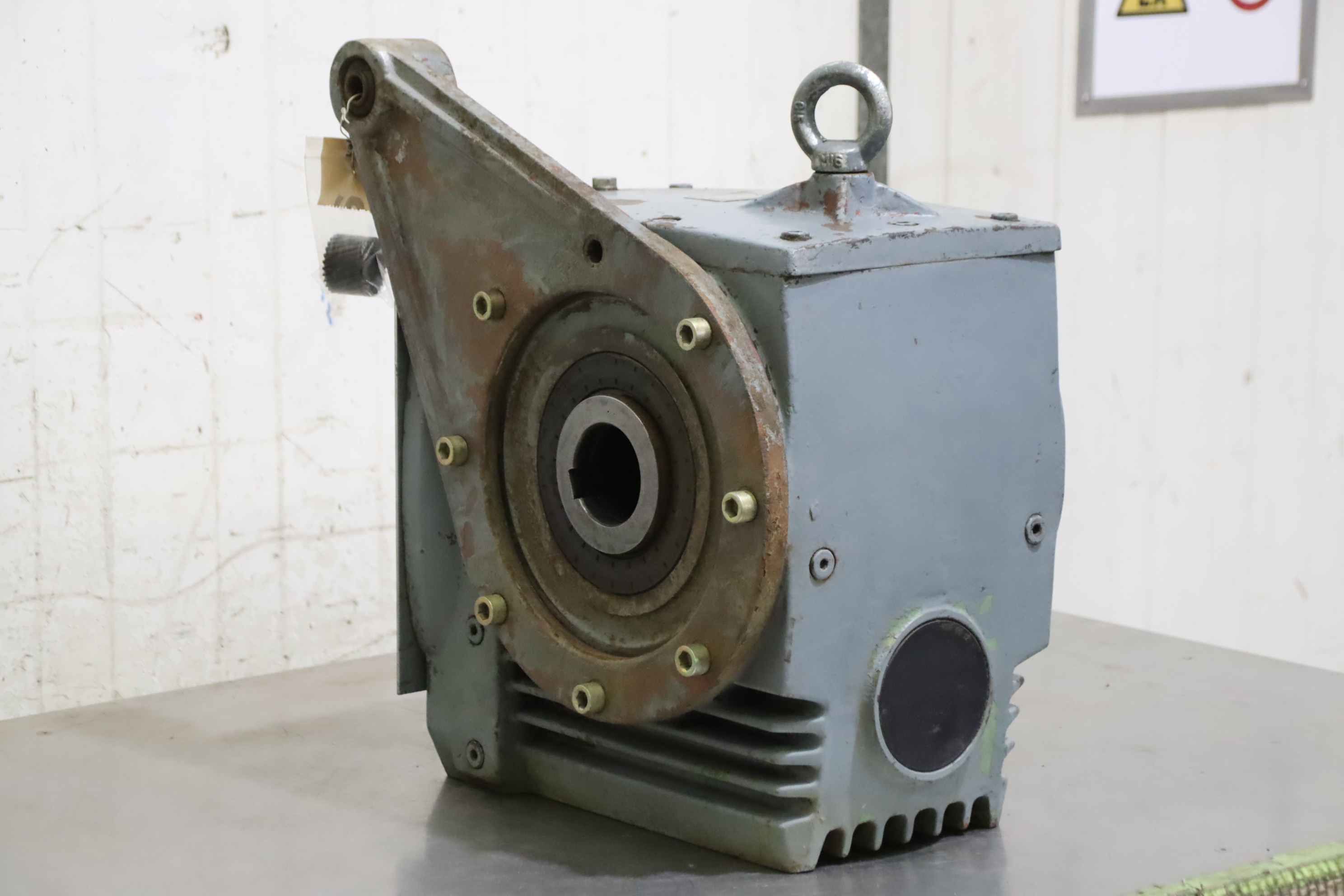Gearbox, spur gear, angle gear, worm gear, adjustable gear motor-Manufacturer: VEB, type 10 UO-50x30 oLTGL 258/4-Translation: i = 30-Shafts: Ø 25 x 60 mm / Ø 14 x 30 mm-Number: 1x gearbox available-Price per piece-Dimensions: 200/180/H170mm-Weight: 9 kg/piece