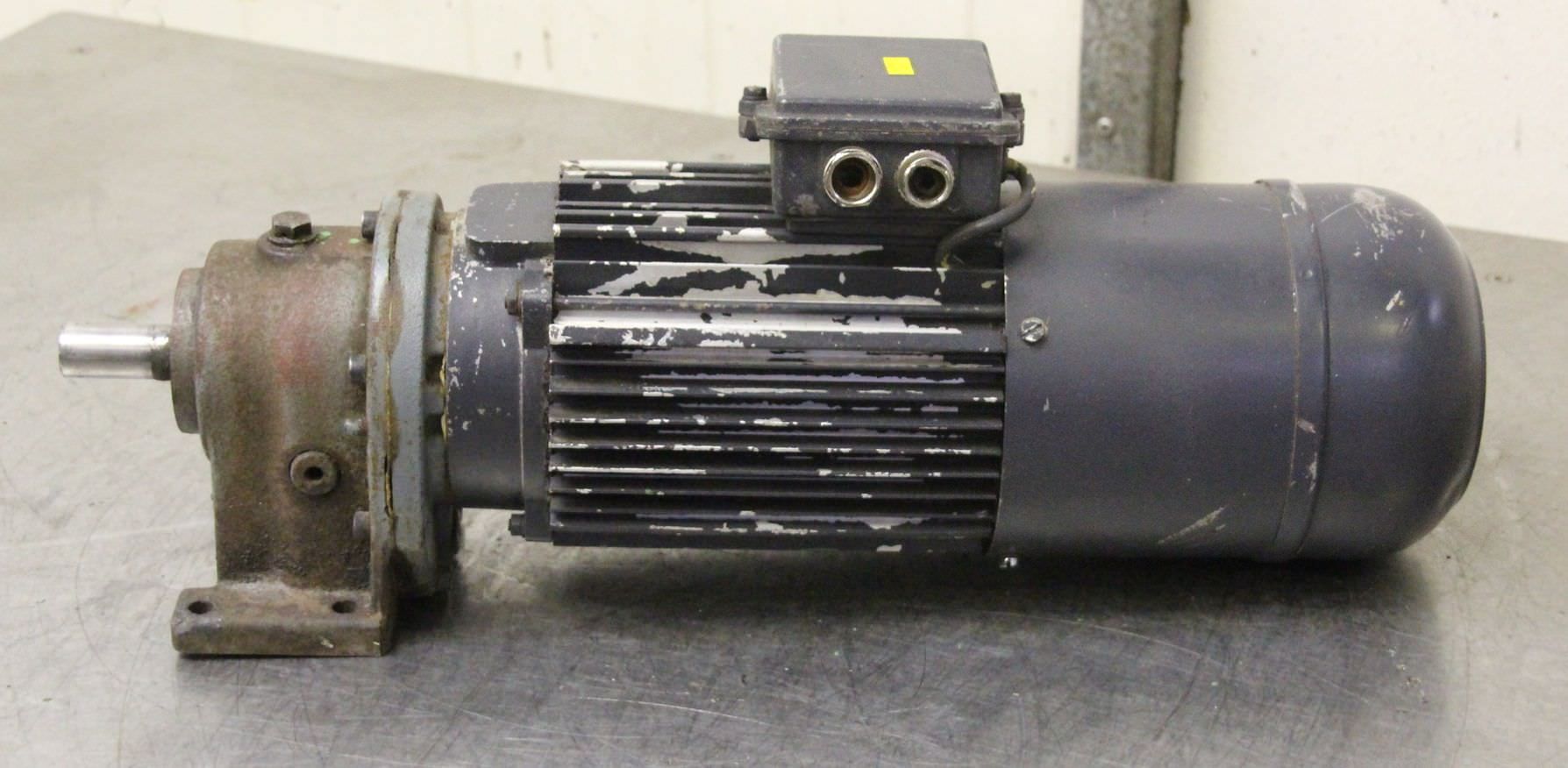 Gear motor, electric motor, three-phase motor, electric gear motor -Speed: 180 rpm -Power: 0.75 kW -Construction: B5 -Diameter shaft: Ø 25 mm -Protection class: IP 54 -Number: 1x motors available -Price: per piece -Dimensions: 470/200/H160 mm -Weight: 18.8 kg