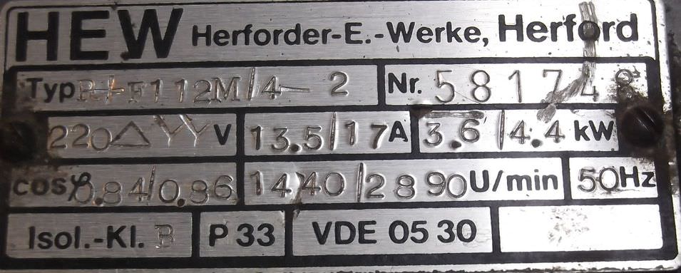 Three-phase motor, electric motor -Power connection: 3x 220 volts -Power: 3.6/4.4 kW -Speed: 1440/2890 rpm -Shaft: Ø 30 mm -Design: B3 -Protection class: IP 33 -Quantity: 1 available -Dimensions: 570/260/H230 mm -Weight: 35 kg