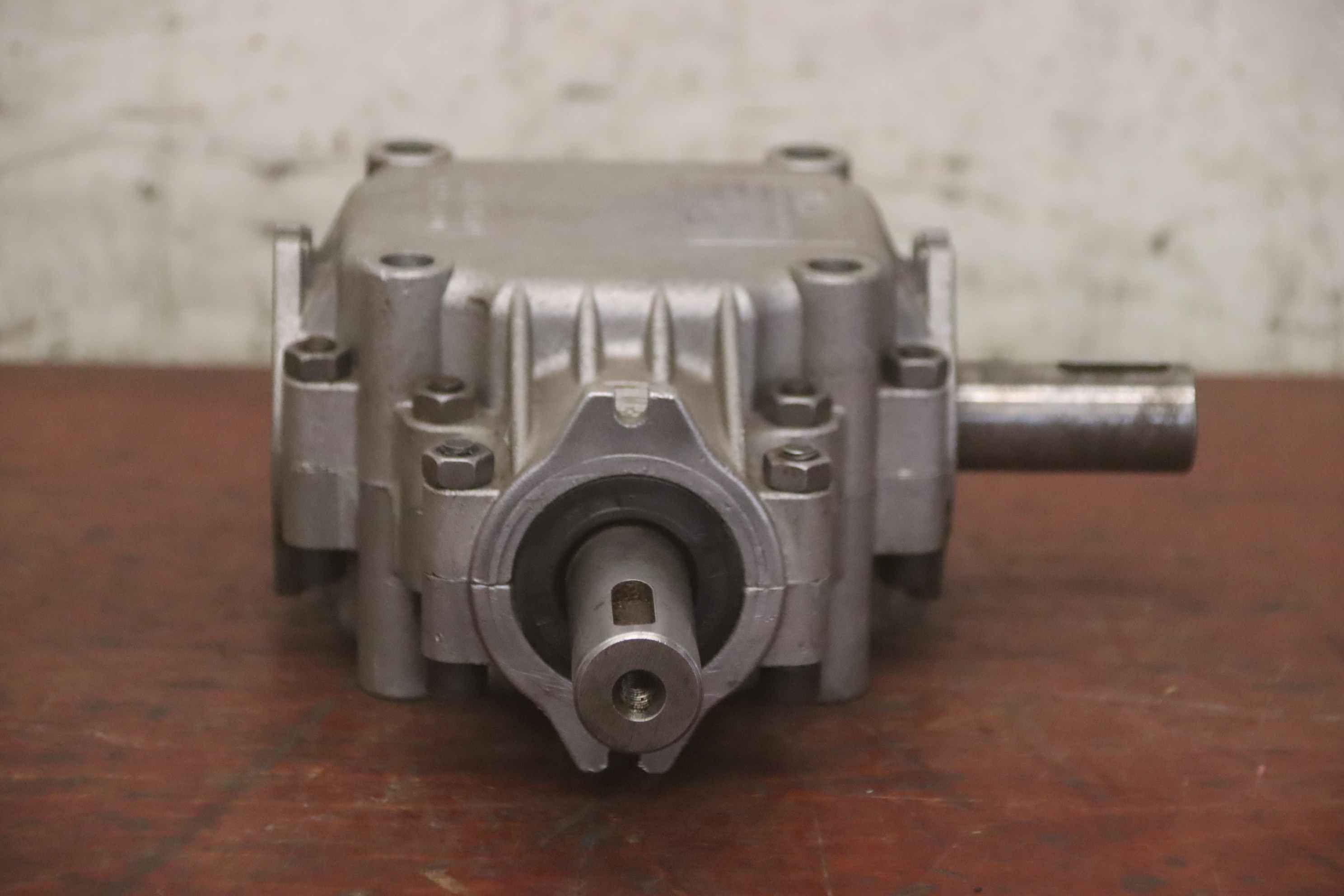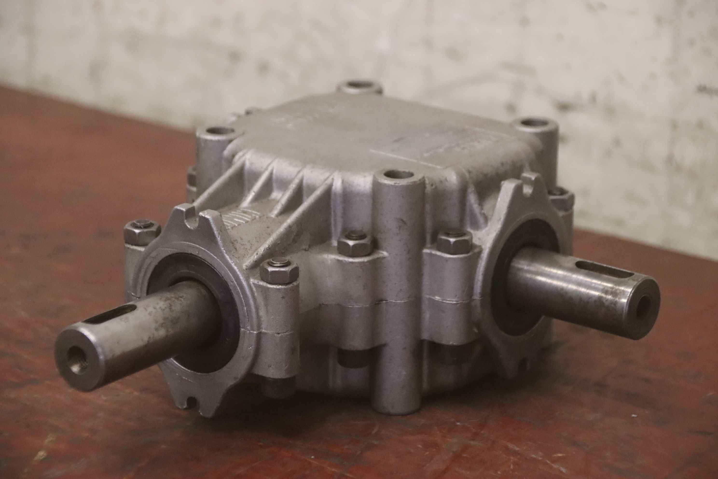 Gearbox, spur gear, angle gear, worm gear-Manufacturer: Comer, gearbox type L-25-A-Translation: i = 1:1-Shafts: Ø 25 x 60 mm / Ø 25 x 55 mm-Dimensions: 240/205/H95mm-Weight: 4.3 kg