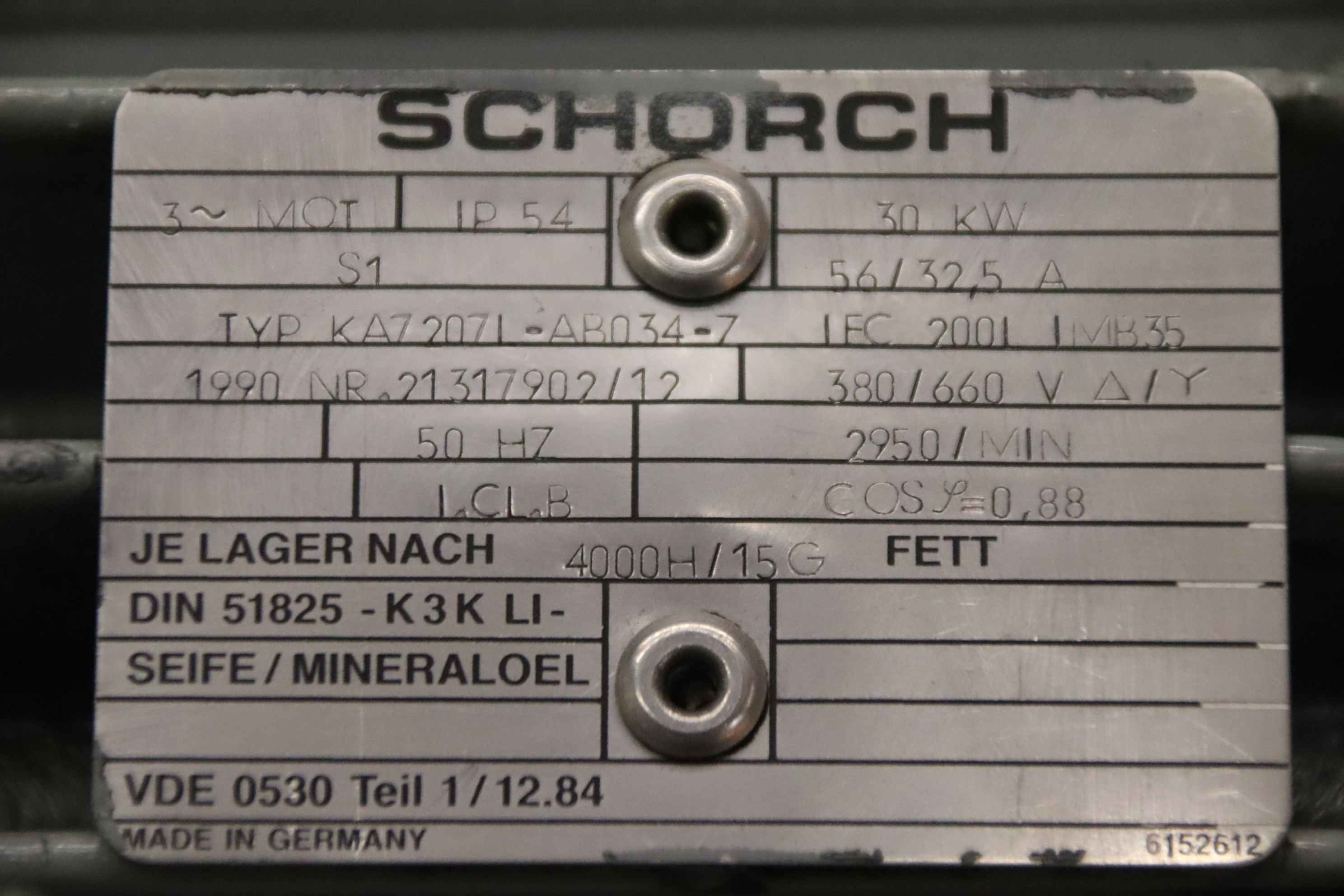 electric motor, three-phase motor-Manufacturer: Schorch, electric motor type KA72071-ABO34-7-Power: 30 kW-Speed: 2950 rpm-Shaft: Ø 55 x 110 mm-Design: B3/B5-Protection class: IP 54-Dimensions: 790/510/H410 mm-Weight: 244 kg
