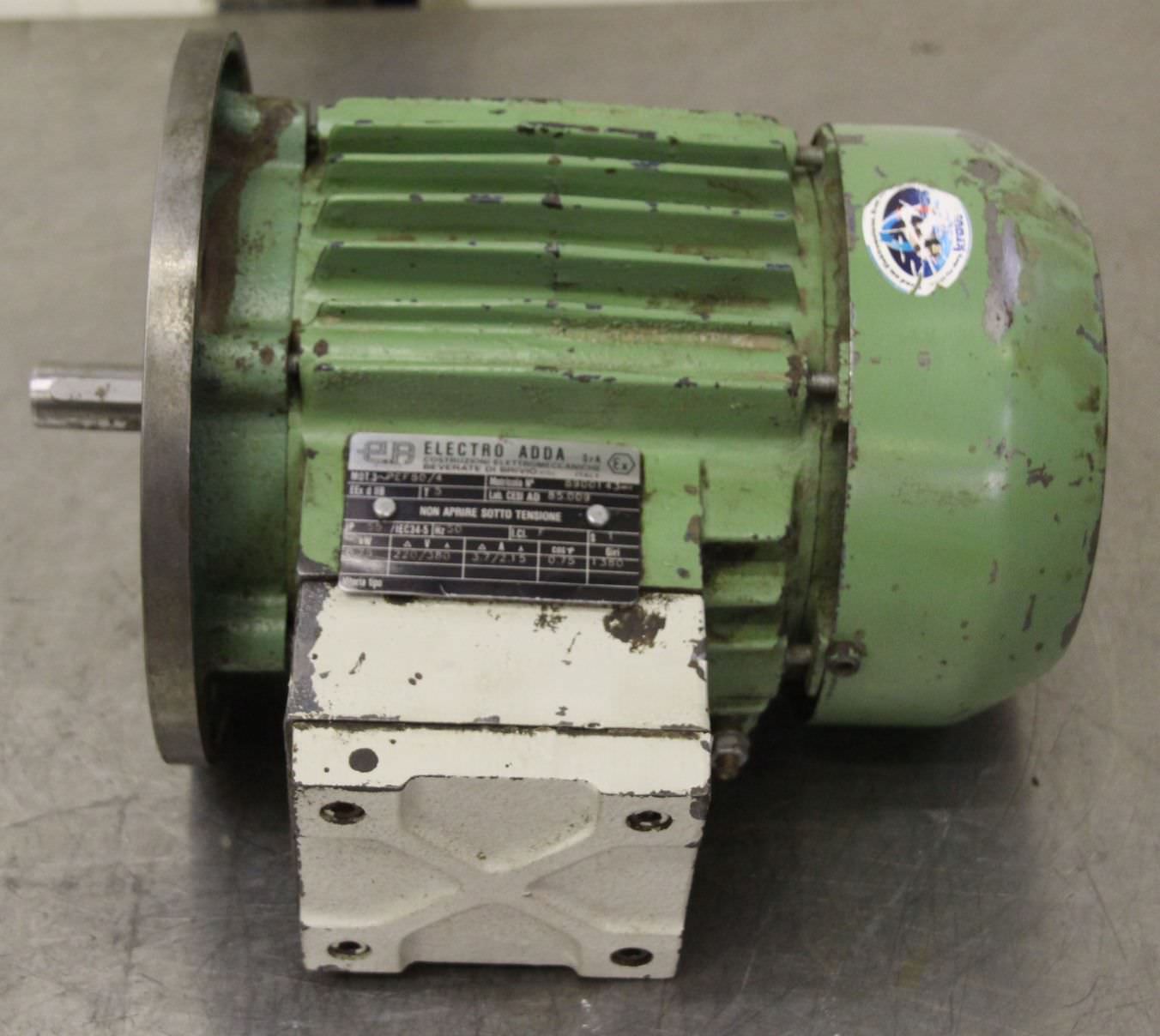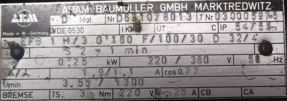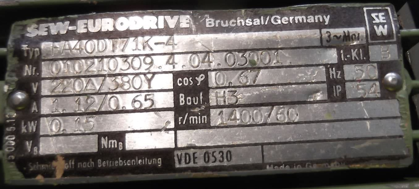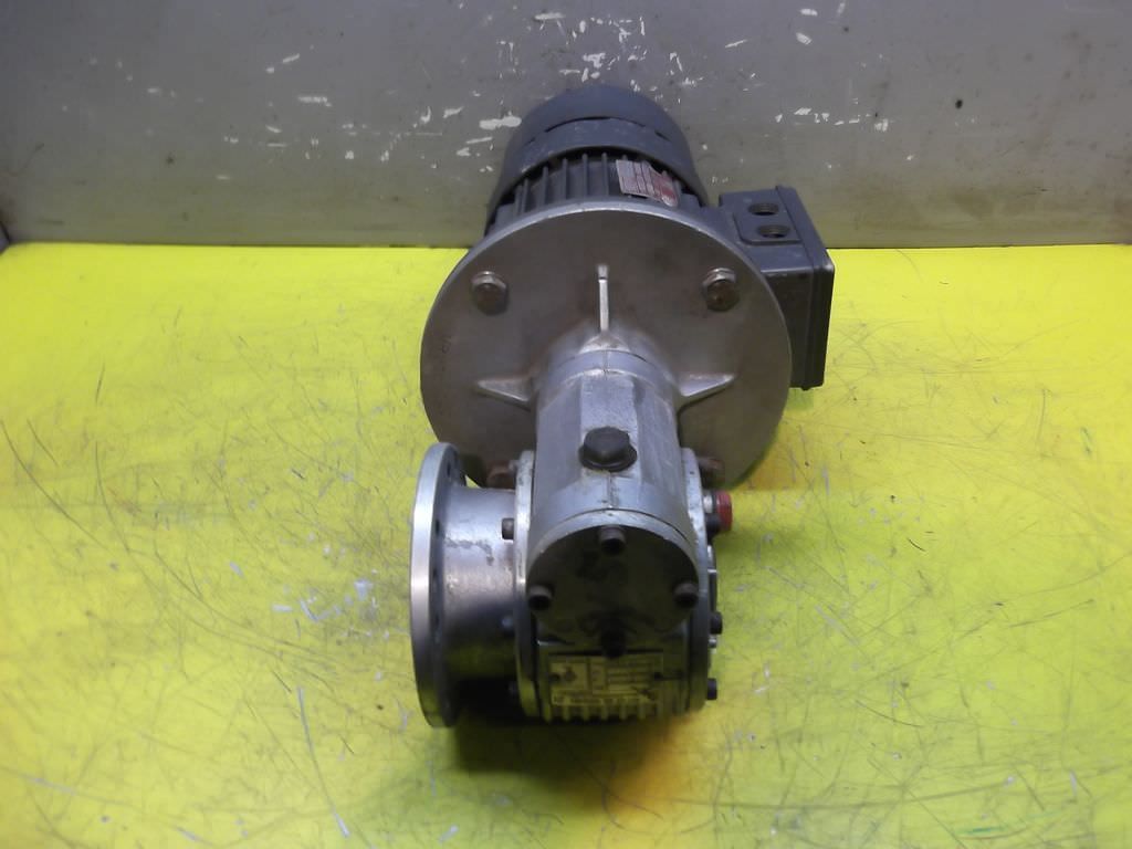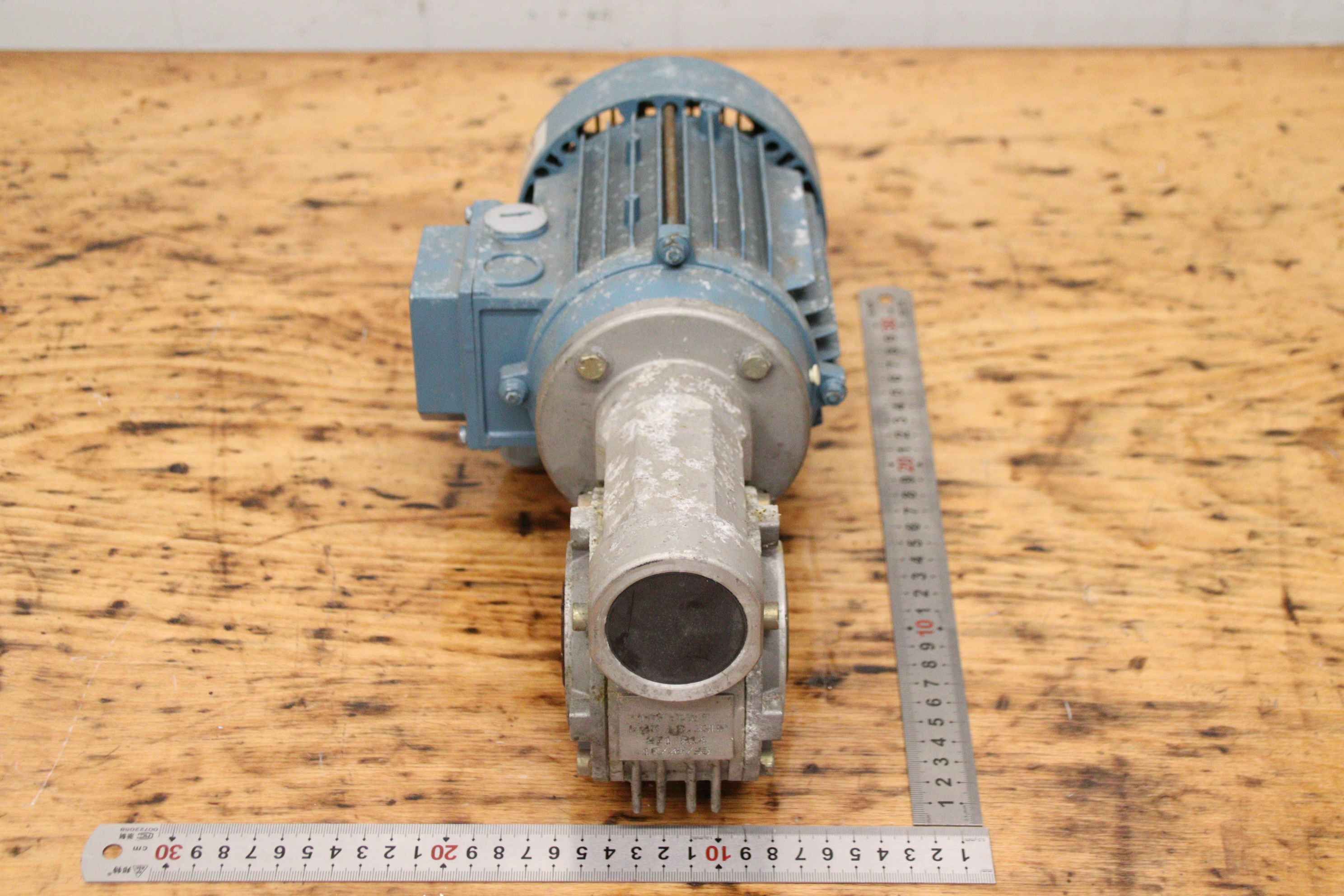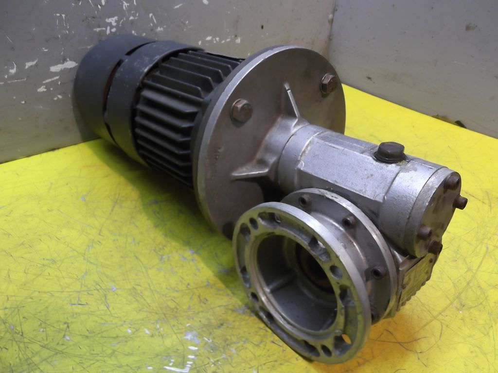 Geared motor, electric motor, three-phase motor, electric geared motor -Manufacturer of gearbox: Bonfiglioli type MVF 49/P -Speed: 20.4 rpm i= 45 -Motor manufacturer ABB MU71B14-6 MK129106-S -Power: 0.25 kW -Design: B5 angle -Hollow shaft: Ø 25 x 80 mm -Protection class: IP 55 -Number: 3x geared motors available -Price: per piece -Dimensions: 350/170/H180 mm -Weight: 8.5 kg